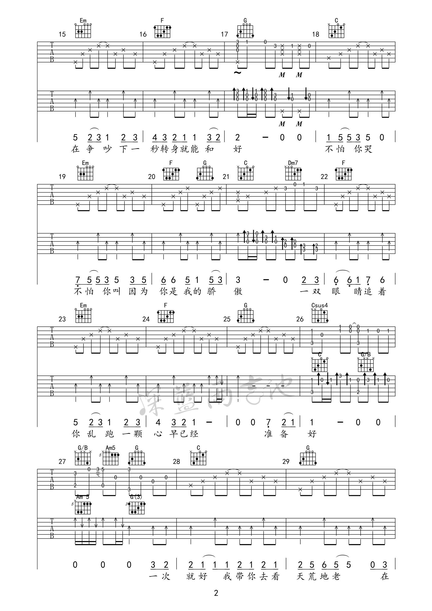 吉他弹唱C调来源:深蓝雨吉他131 浏览2024-01-22 20:37发布图谱共4页