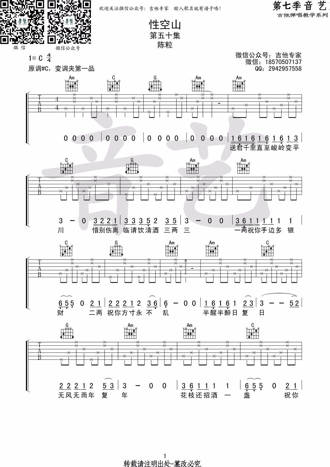 曲谱介绍: 陈粒《性空山》吉他弹唱谱,采用C调指法编配,音艺吉他编配出品,共有2张高清图谱,免翻页排版设计。