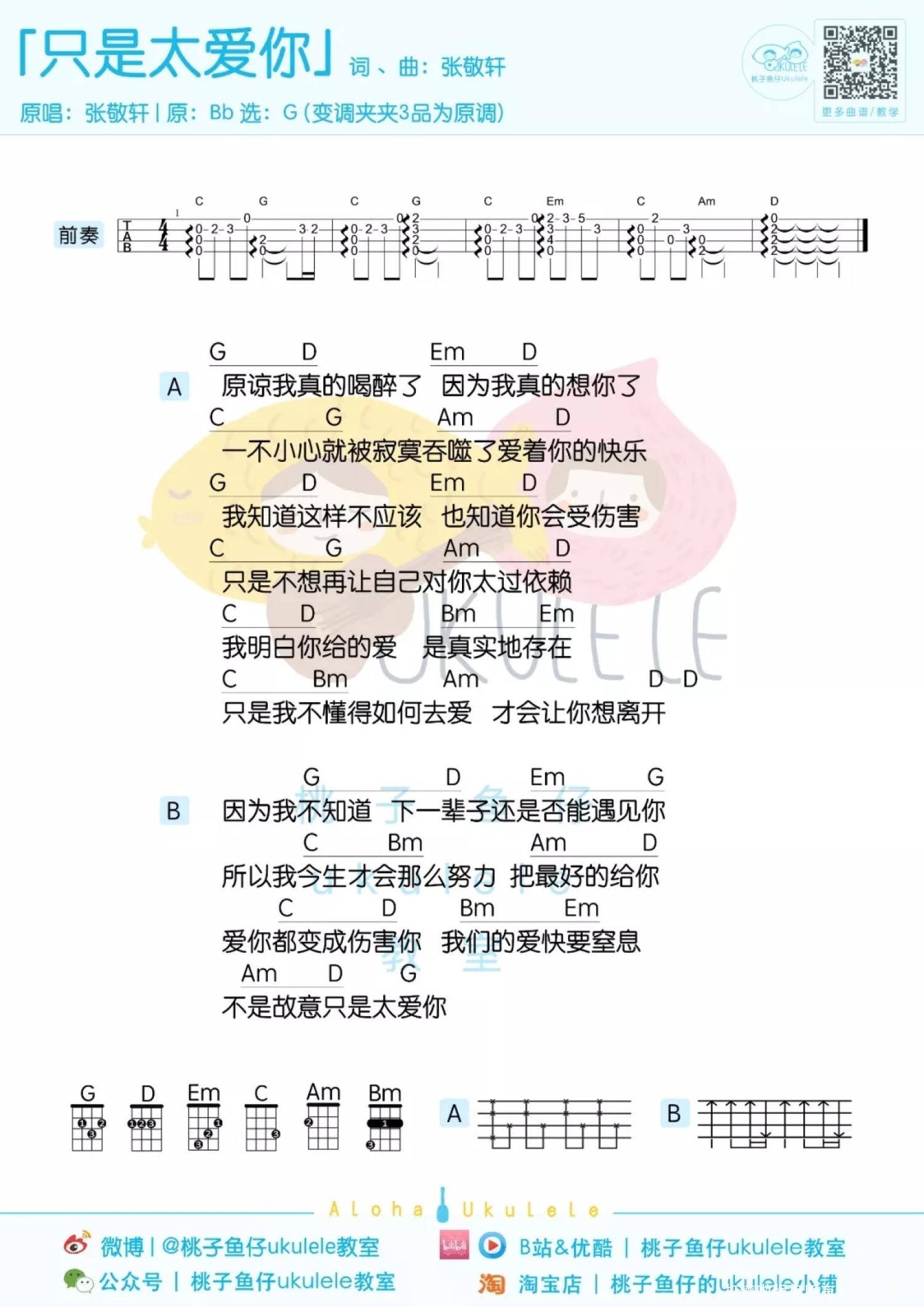 曲谱介绍: 张敬轩《只是太爱你》尤克里里谱,共有1张高清图谱,免翻页排版设计。
