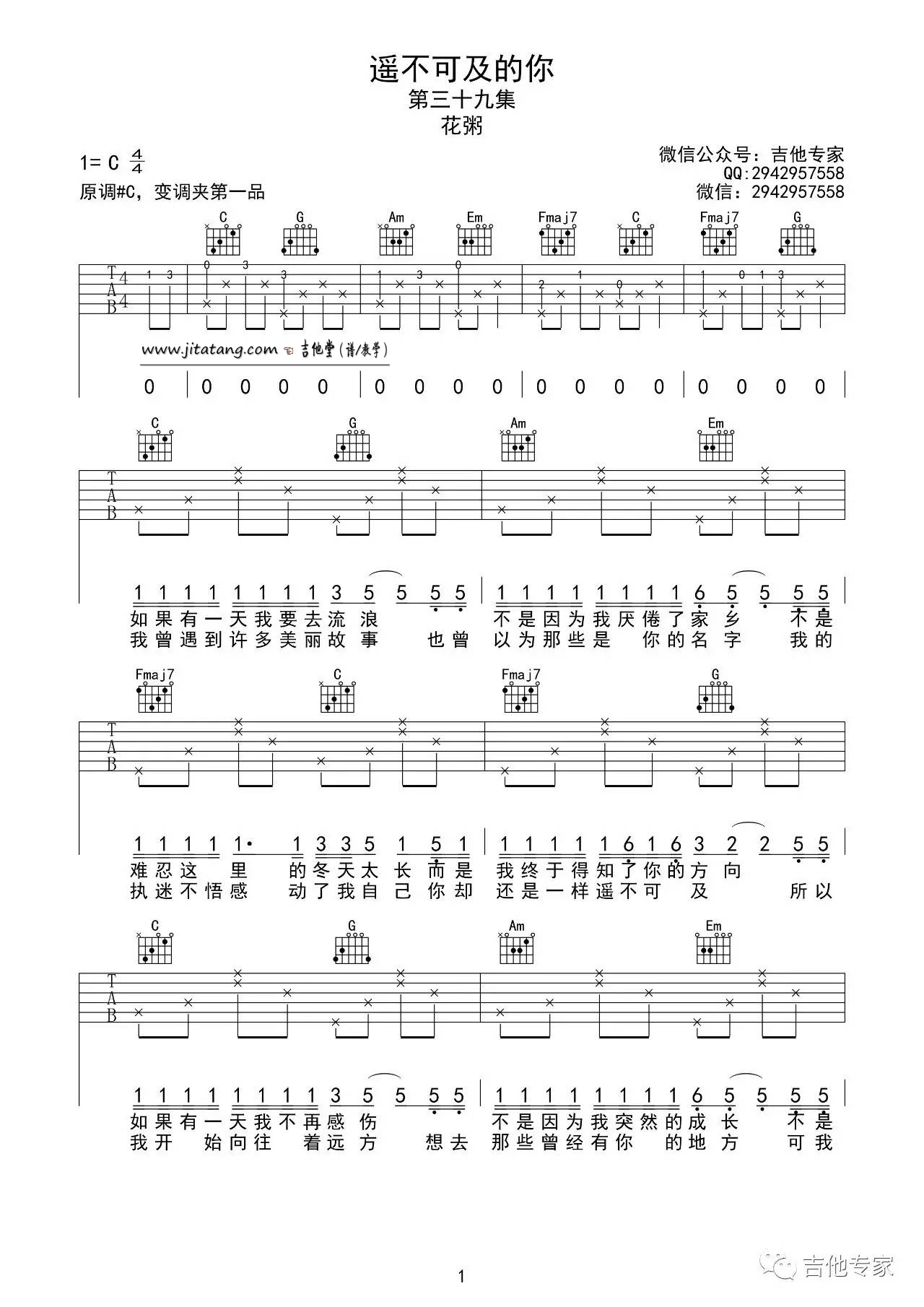 遥不可及的你吉他谱 - 花粥 - C调吉他弹唱谱