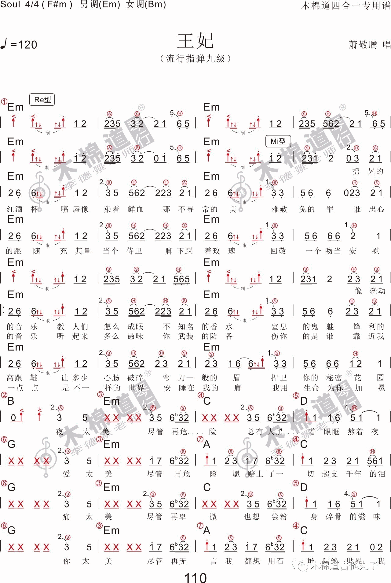 曲谱介绍: 萧敬腾《王妃》吉他弹唱谱,采用E调指法编配,木棉道吉他丸子编配出品,共有1张高清图谱,免翻页排版设计。