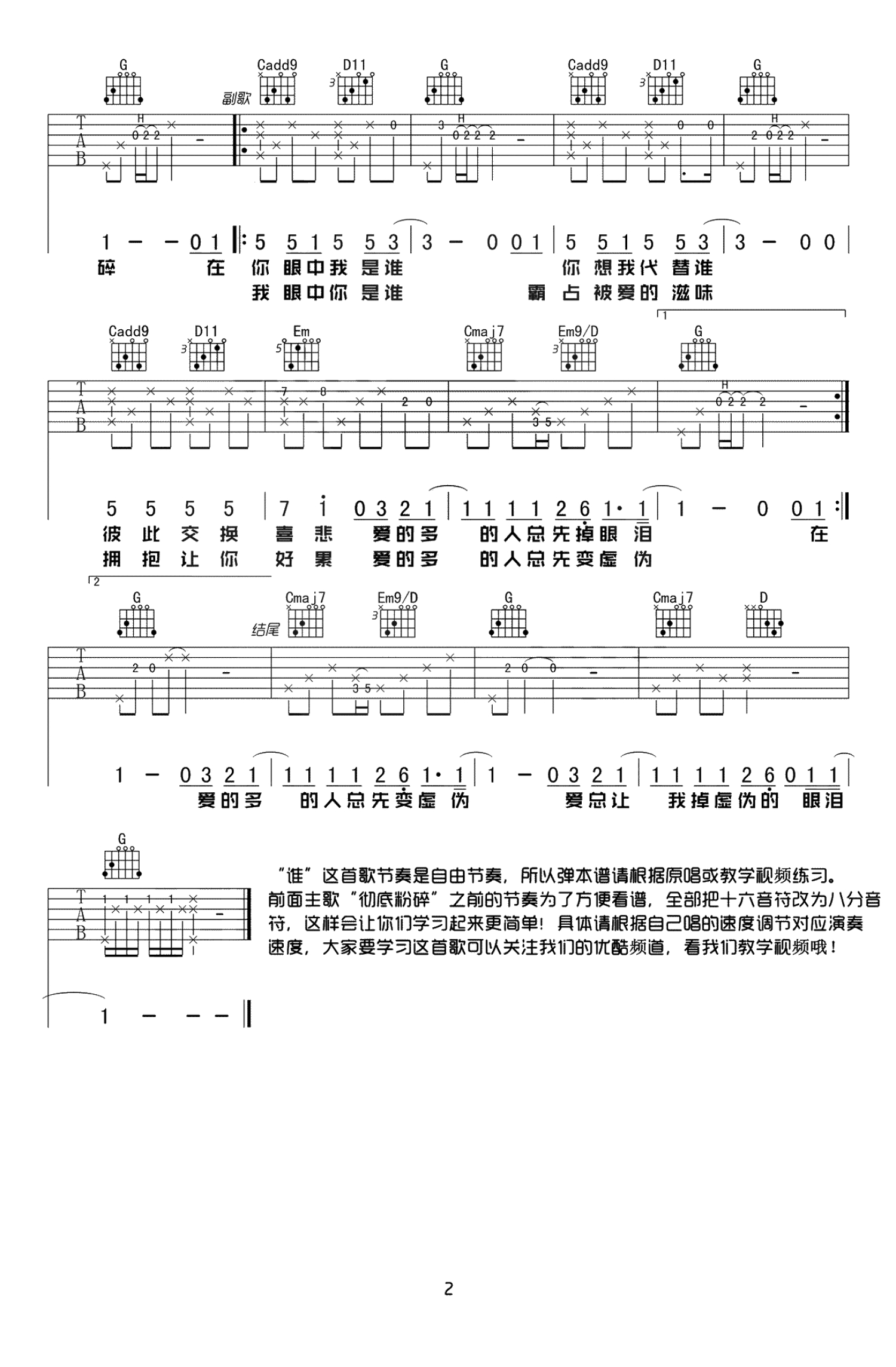 当前位置:琴谱网>吉他弹唱>谁