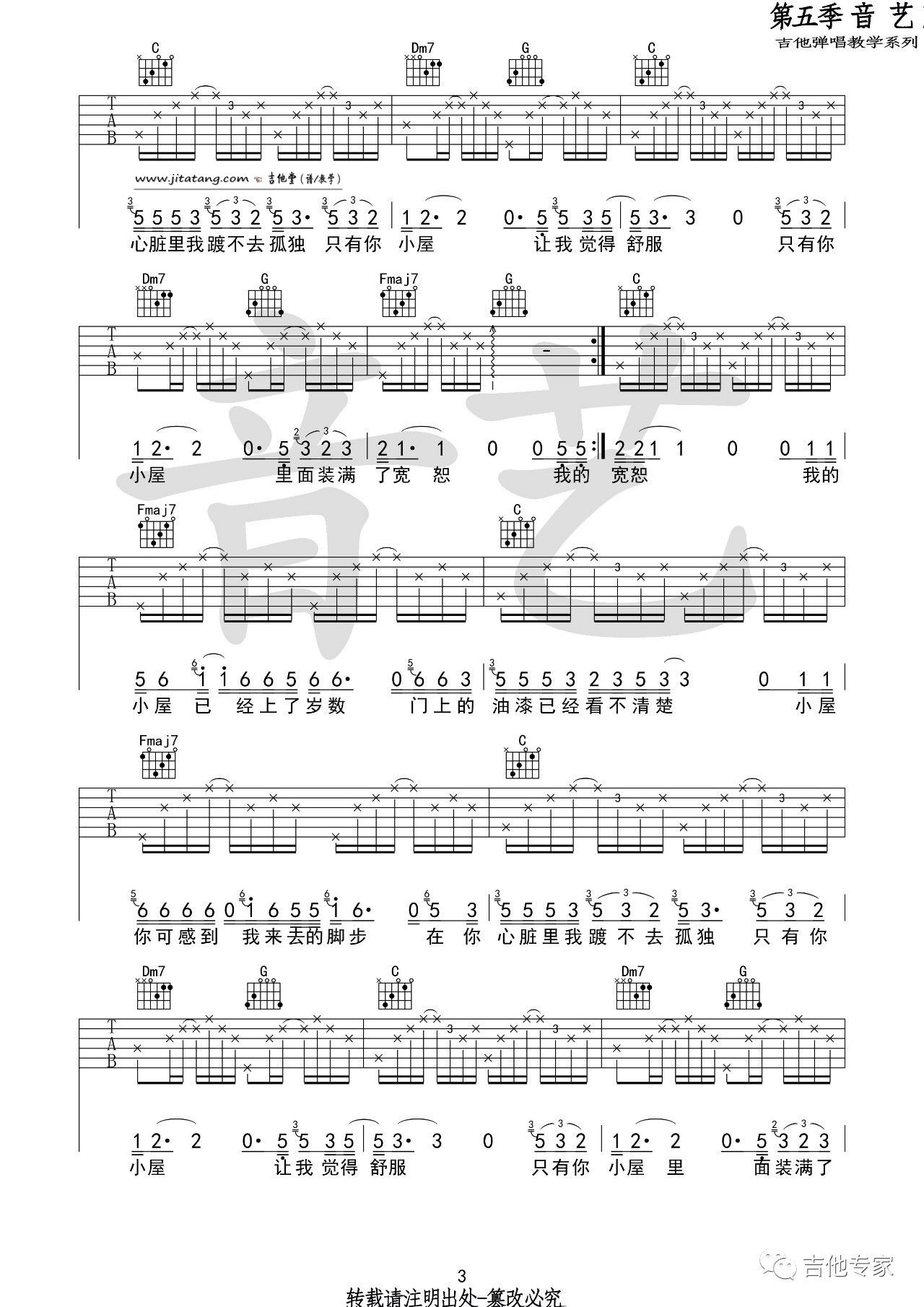 当前位置:琴谱网>吉他弹唱>小屋