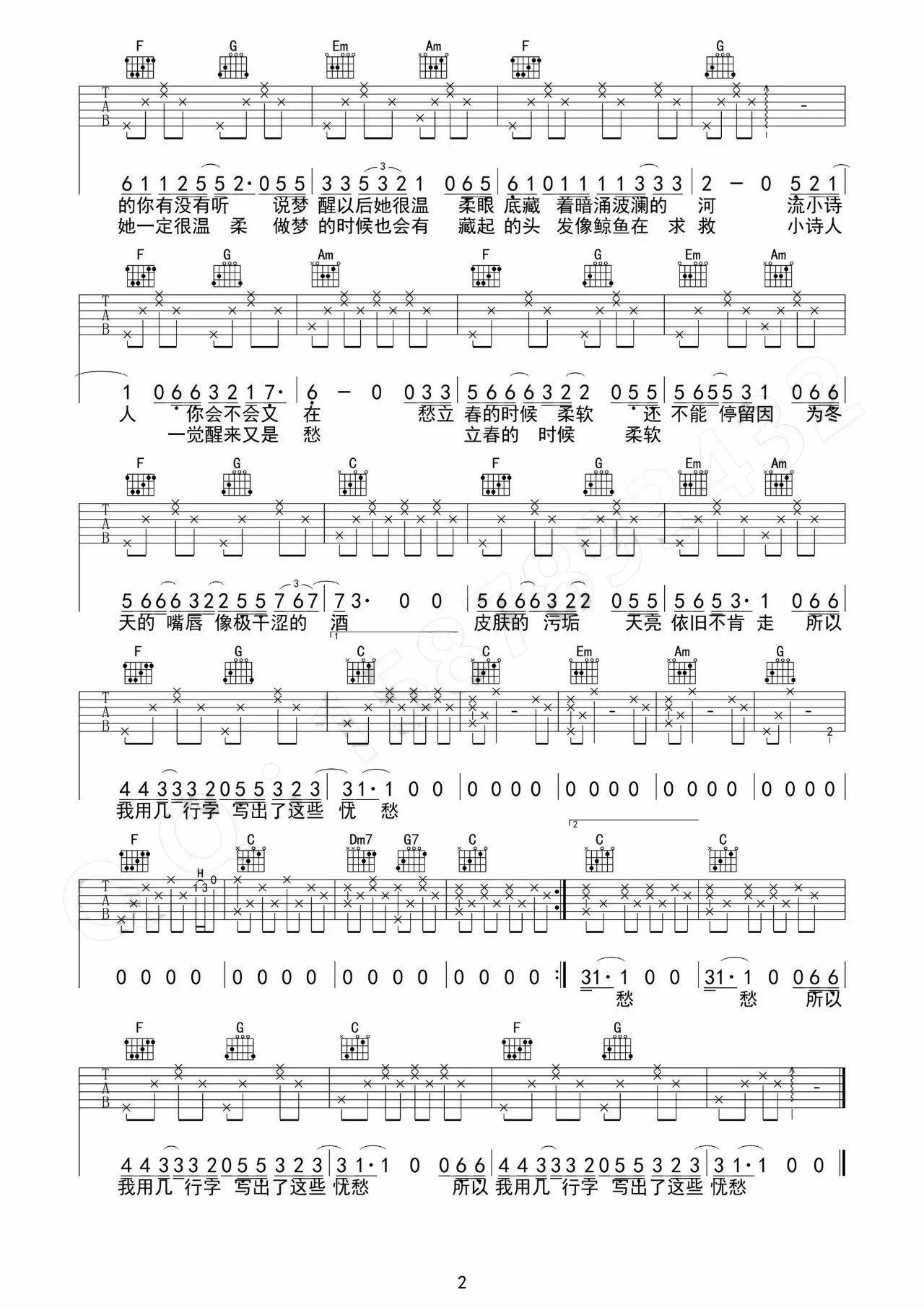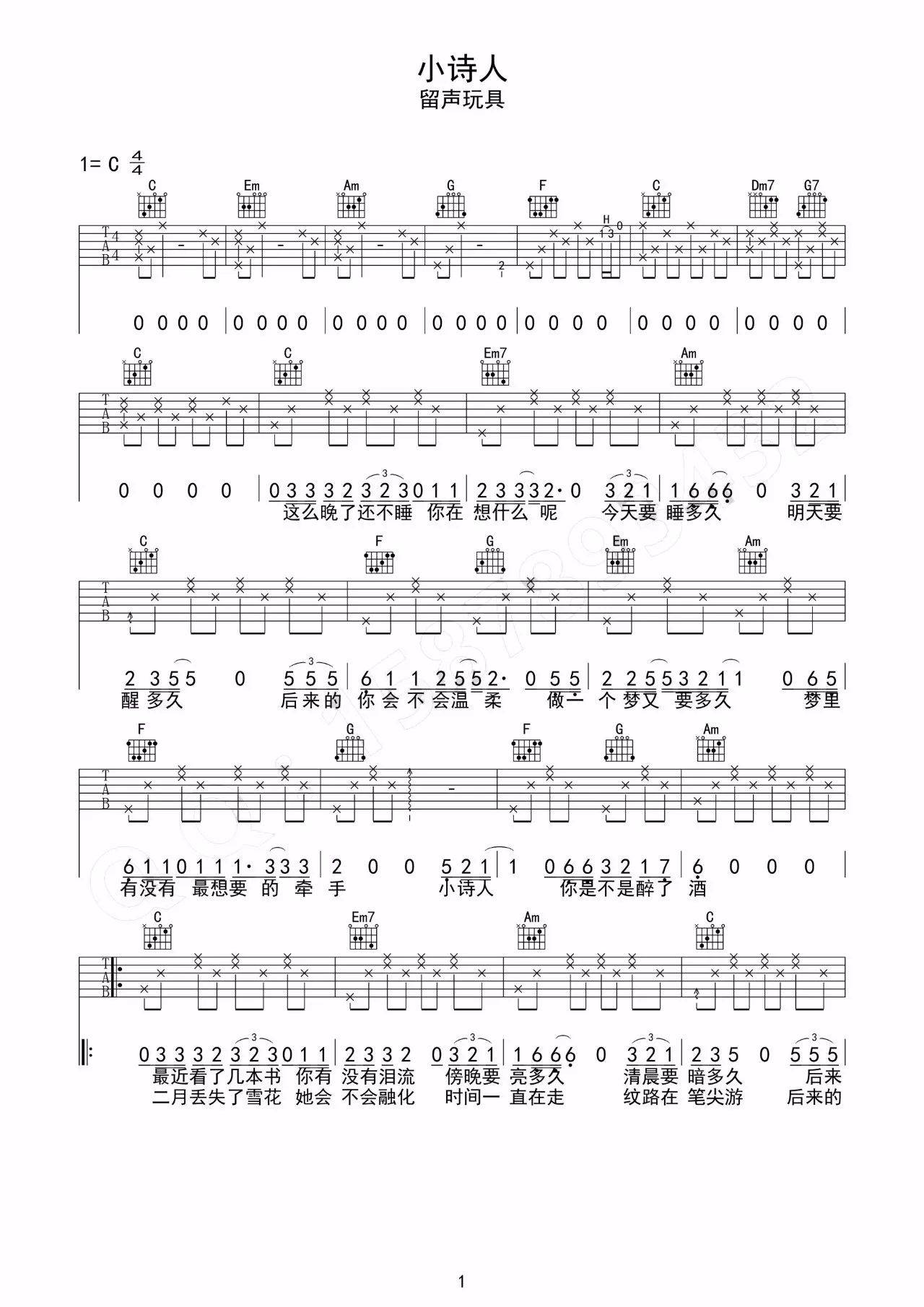 小诗人吉他谱 - 留声玩具 - C调吉他弹唱谱
