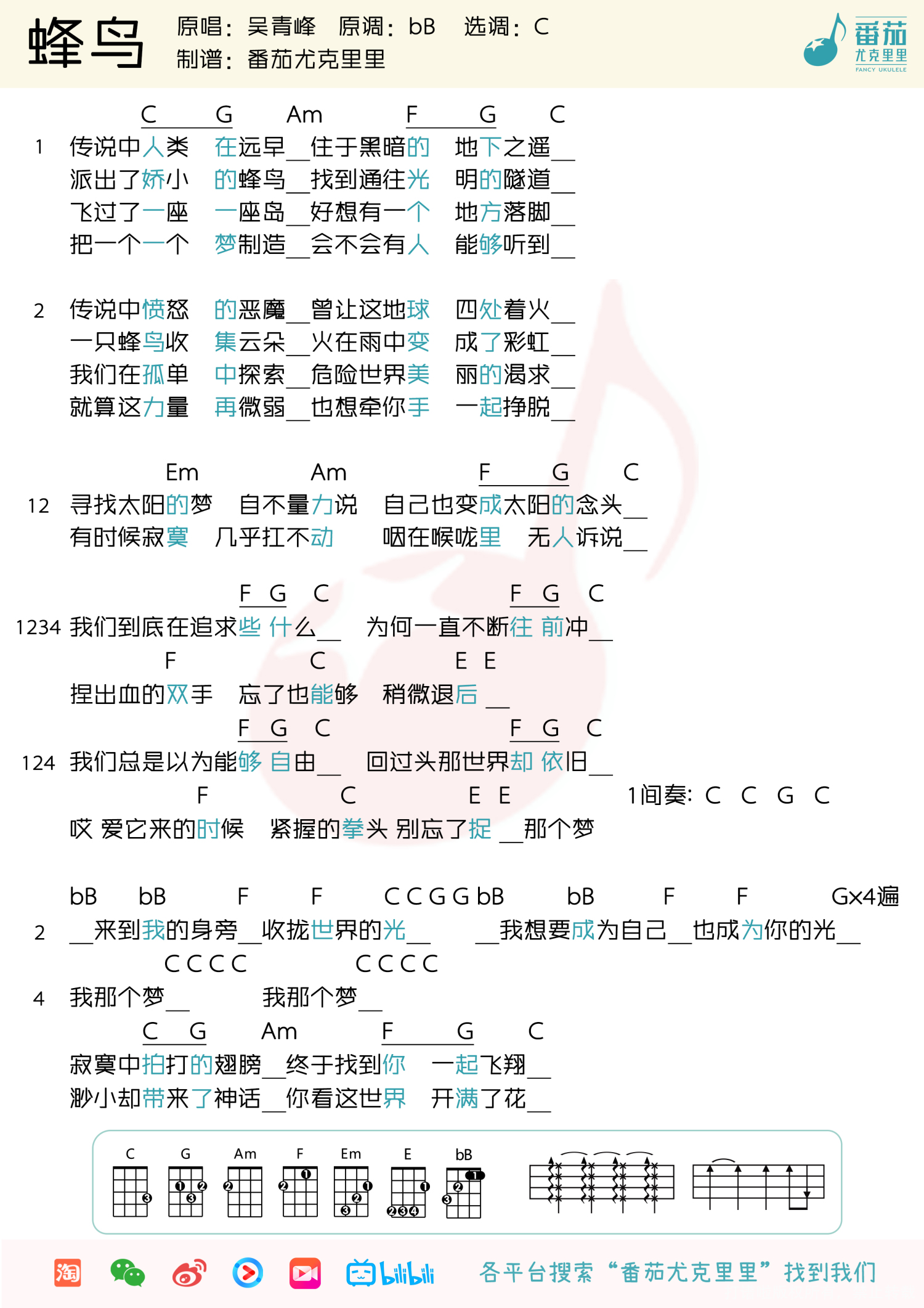 当前位置:琴谱网>尤克里里>蜂鸟
