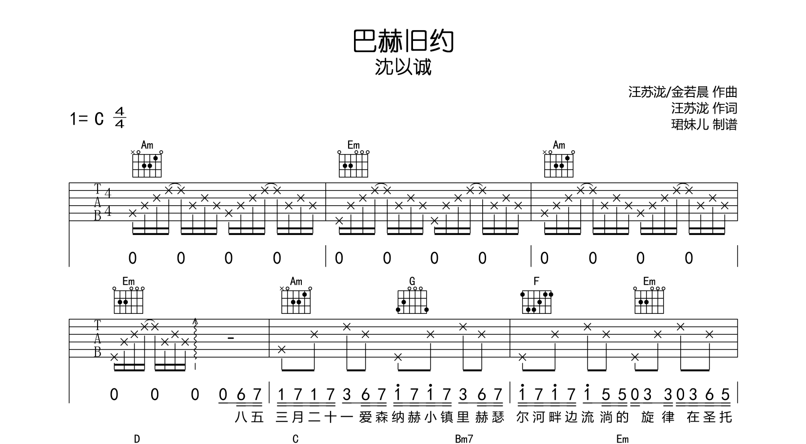 巴赫旧约吉他谱 - 沈以诚 - C调吉他弹唱谱