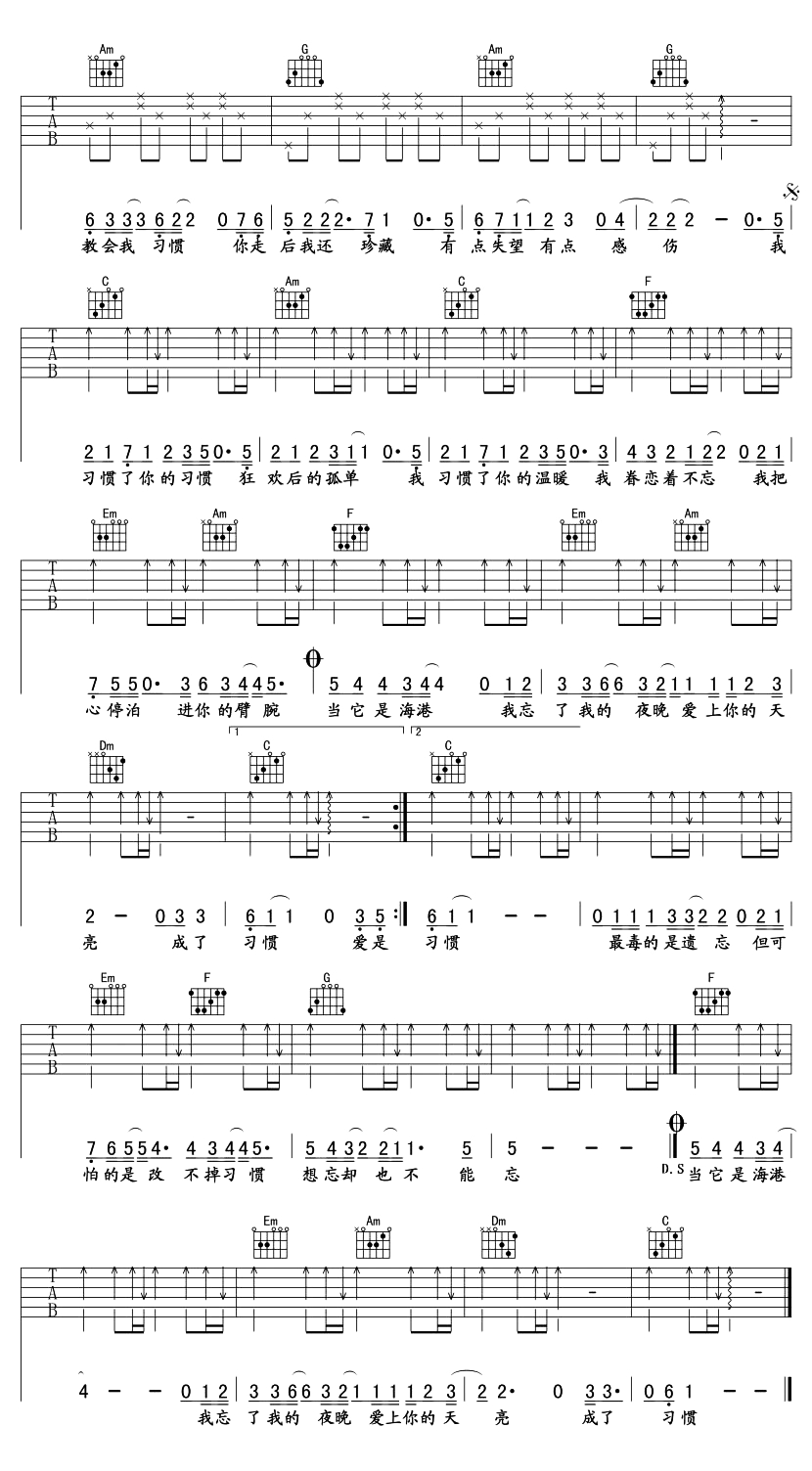 当前位置:琴谱网>吉他弹唱>习惯
