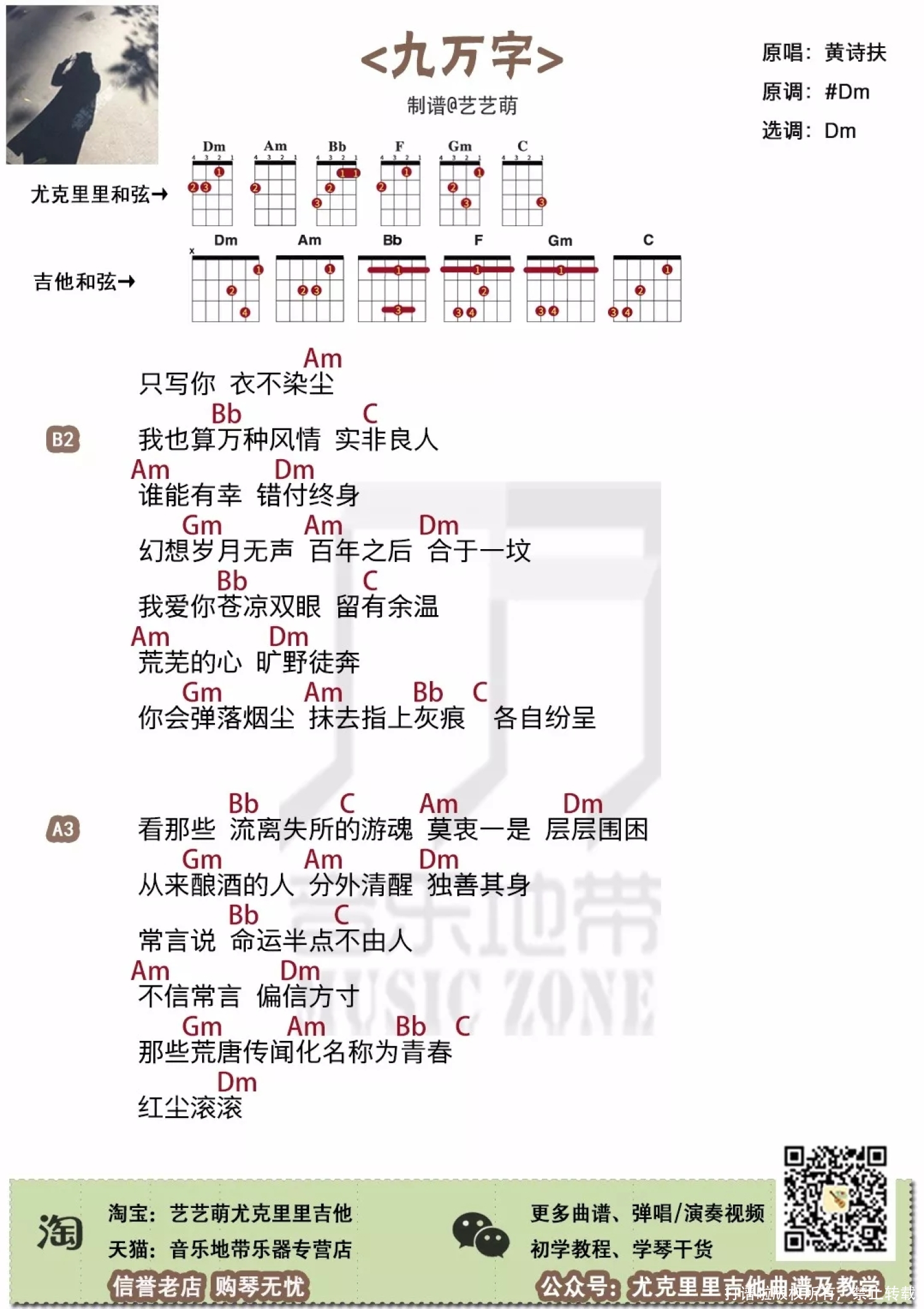 九万字尤克里里谱 - 黄诗扶