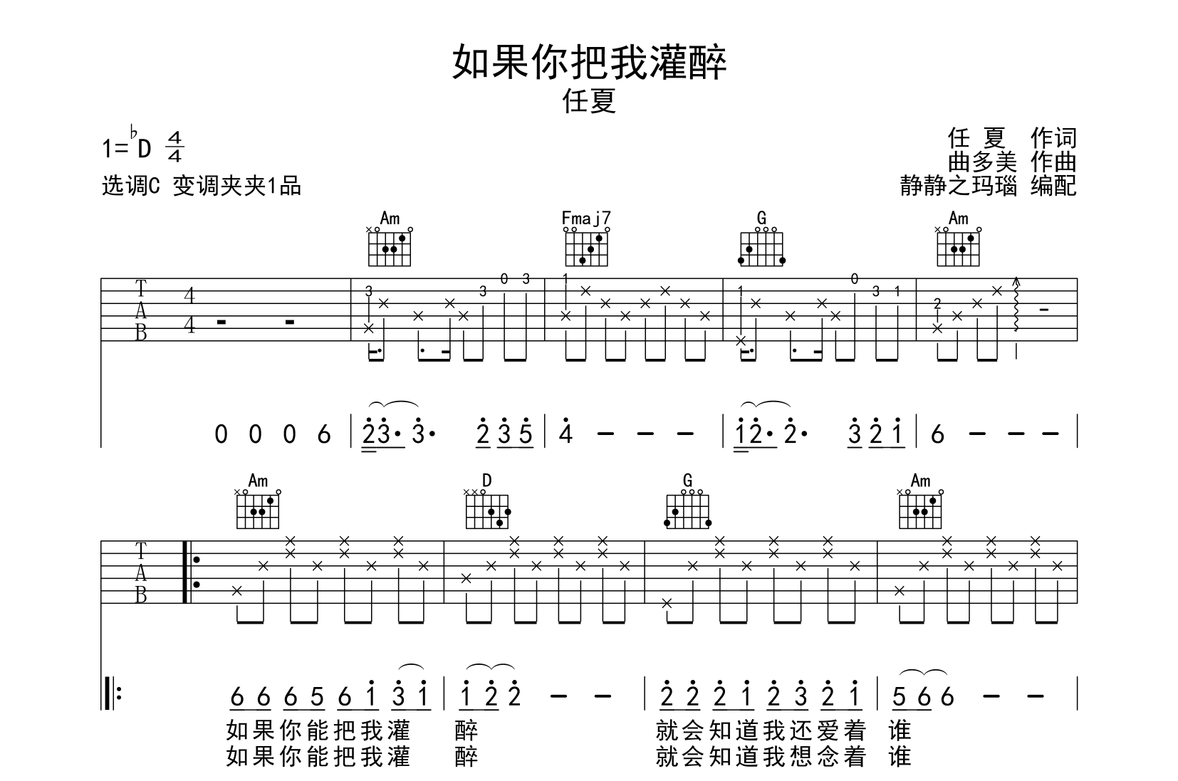 如果你把我灌醉吉他谱 - 任夏 - C调吉他弹唱谱