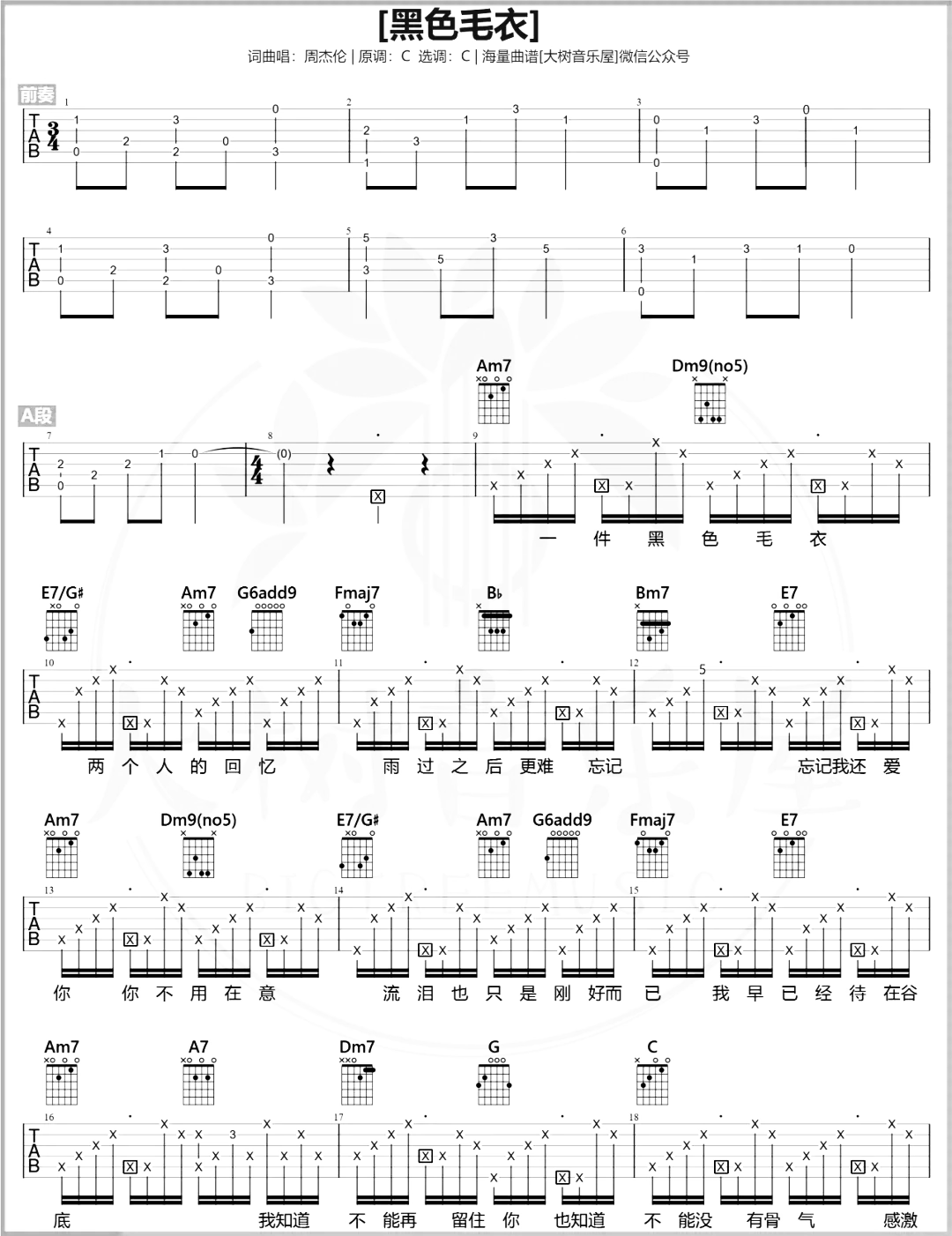 黑色毛衣吉他谱 - 周杰伦 - C调吉他弹唱谱 - 原版