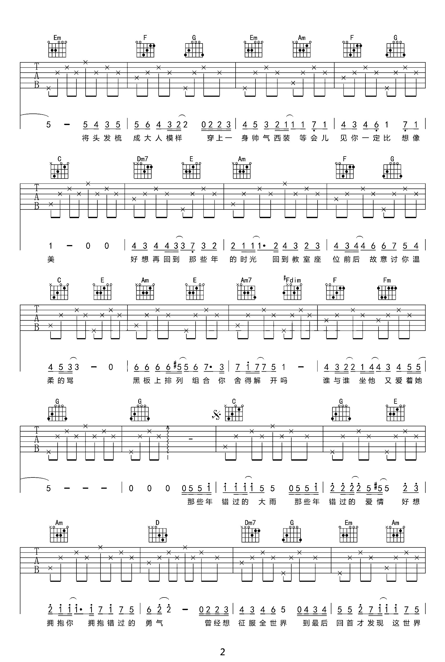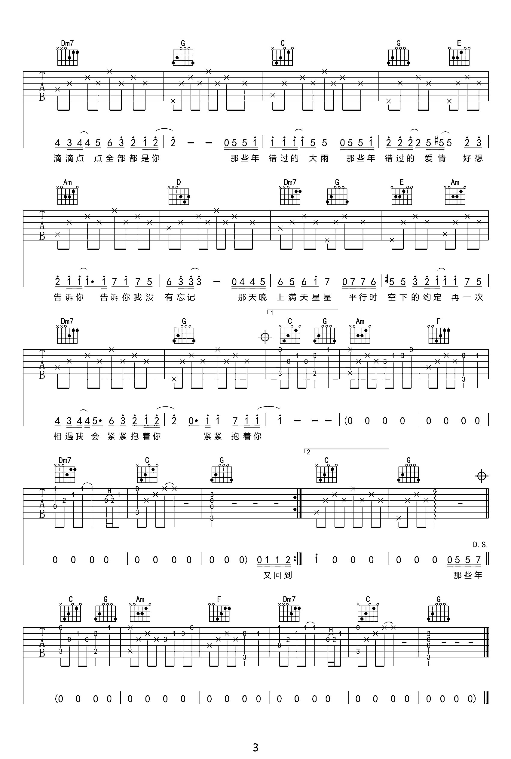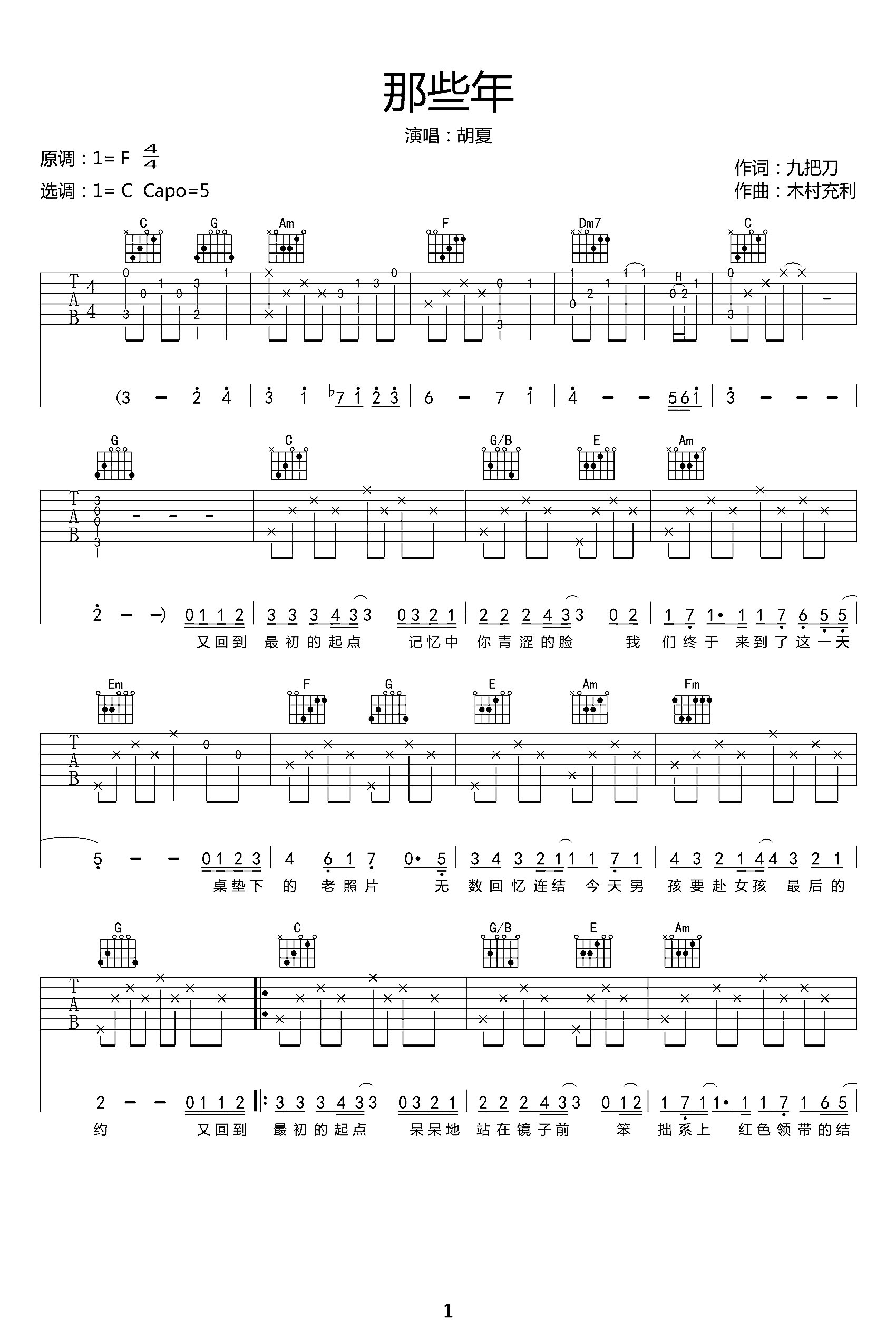 曲谱介绍: 胡夏那些年吉他谱,C调指法编配,变调夹5品弹唱原调F调,《那些年》弹唱六线谱,共三张高清图片谱例,节奏4/4拍,含简易原版前奏,弹唱难度初级简单。
