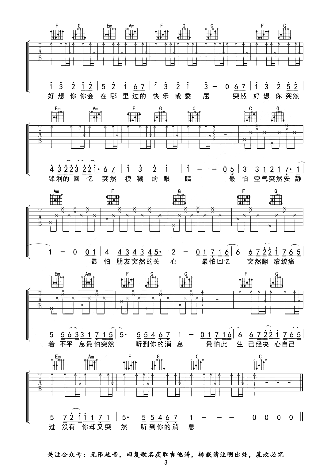 当前位置:琴谱网>吉他弹唱>突然好想你