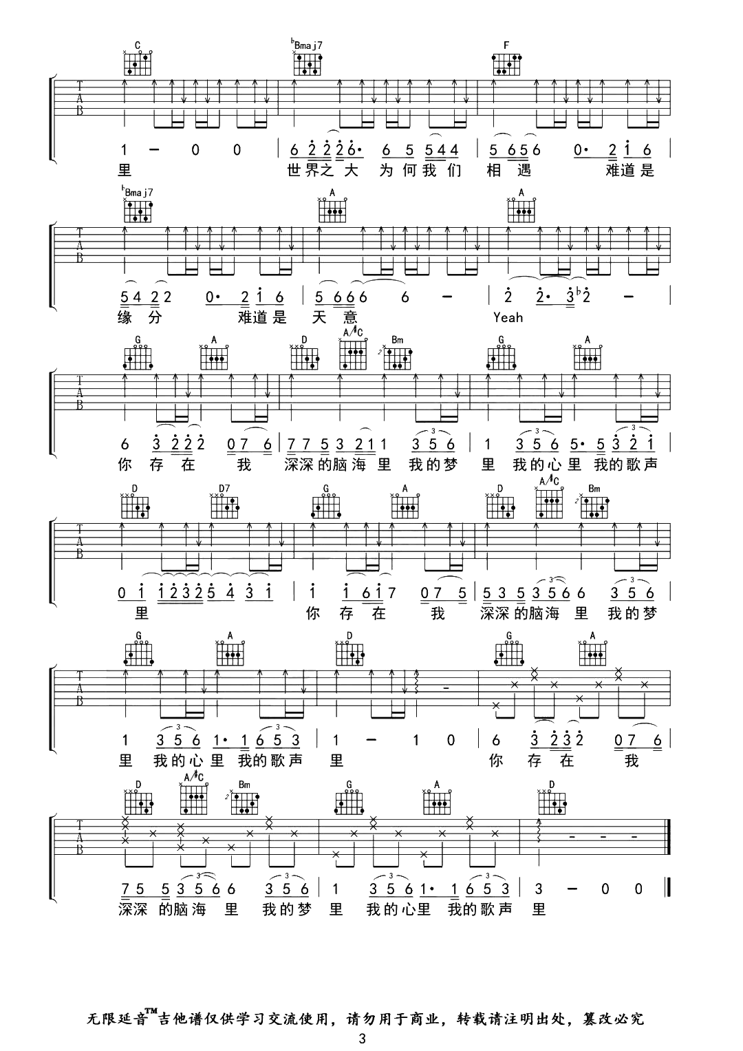当前位置:琴谱网>吉他弹唱>我的歌声里