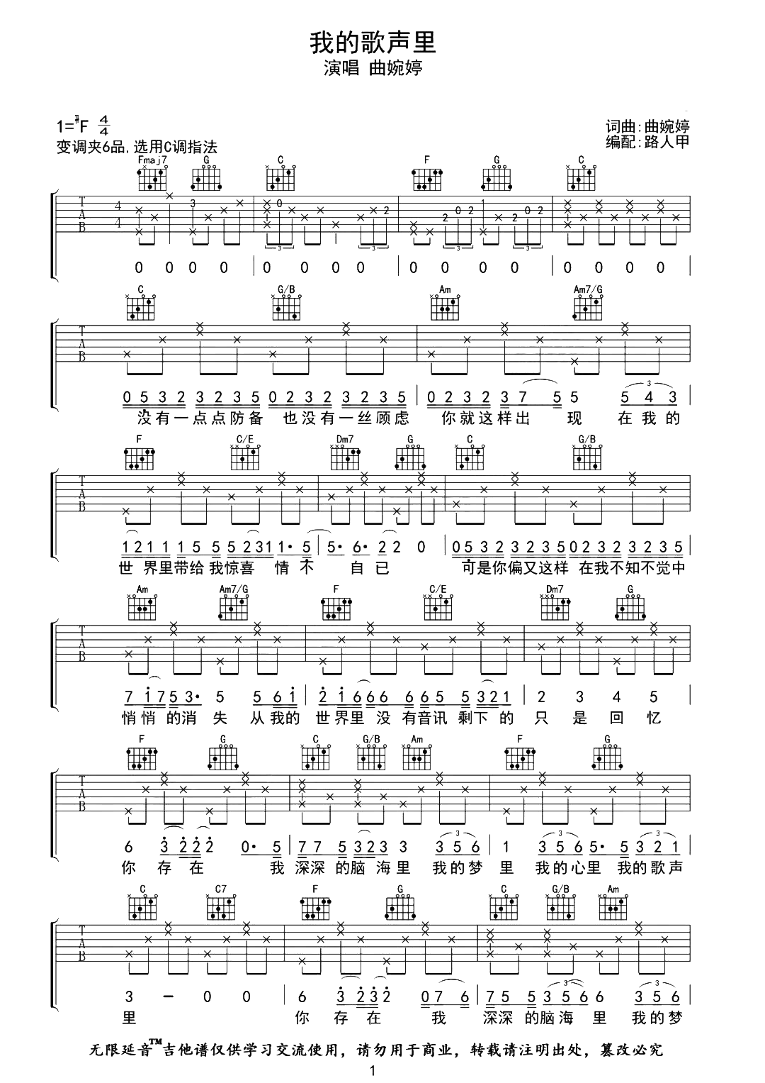 我的歌声里吉他谱 - 曲婉婷 - C调吉他弹唱谱