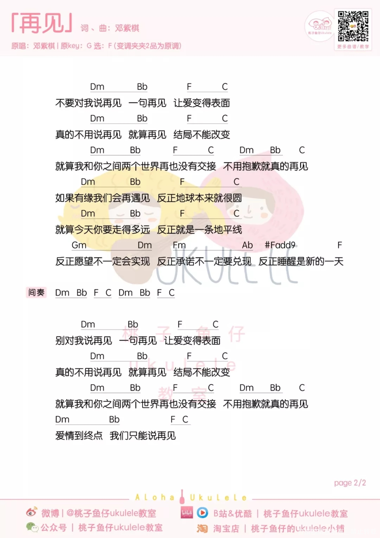 再见尤克里里谱 - 邓紫棋