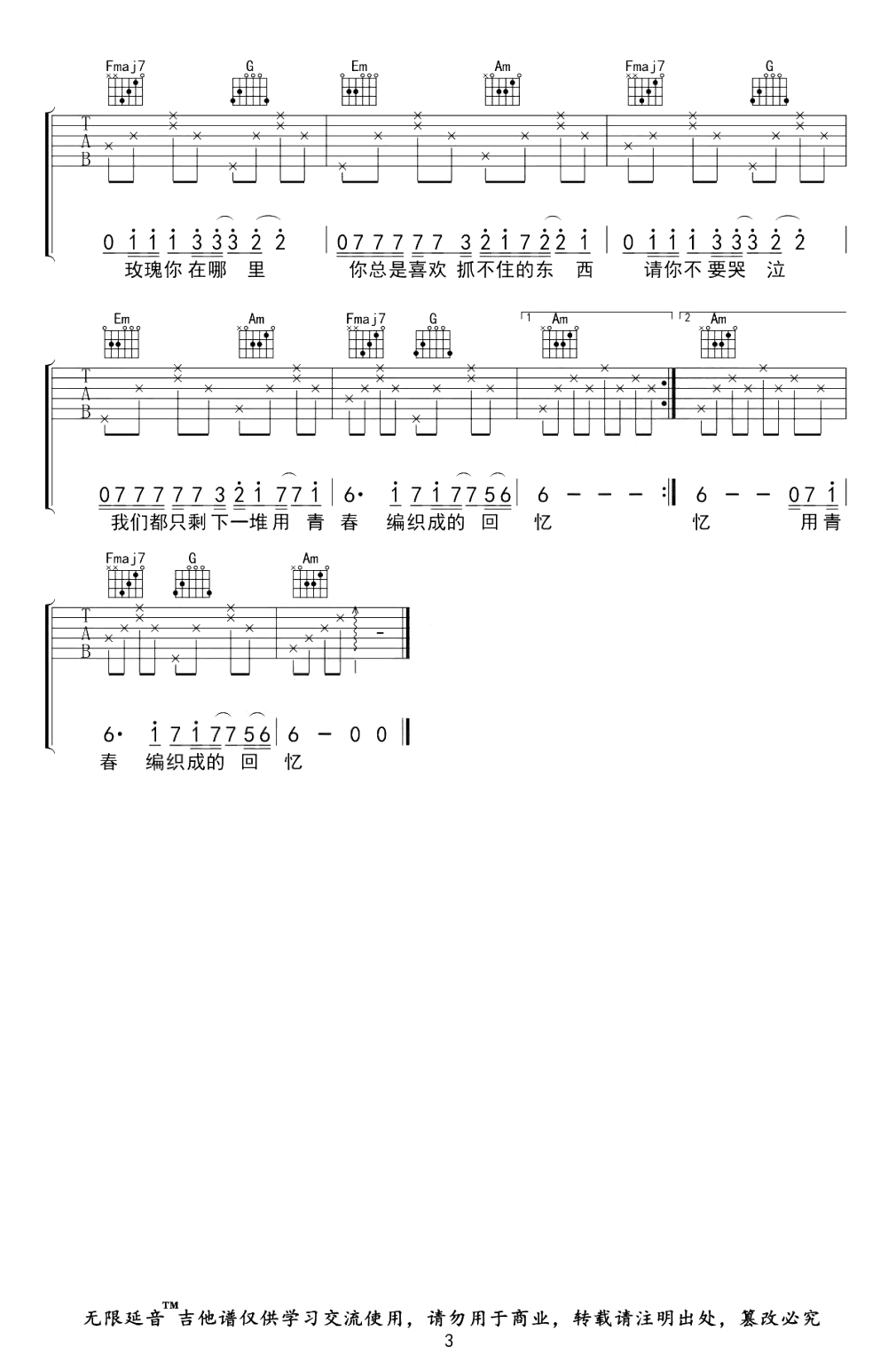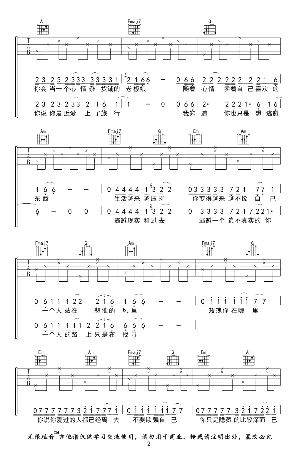 当前位置:琴谱网>吉他弹唱>玫瑰