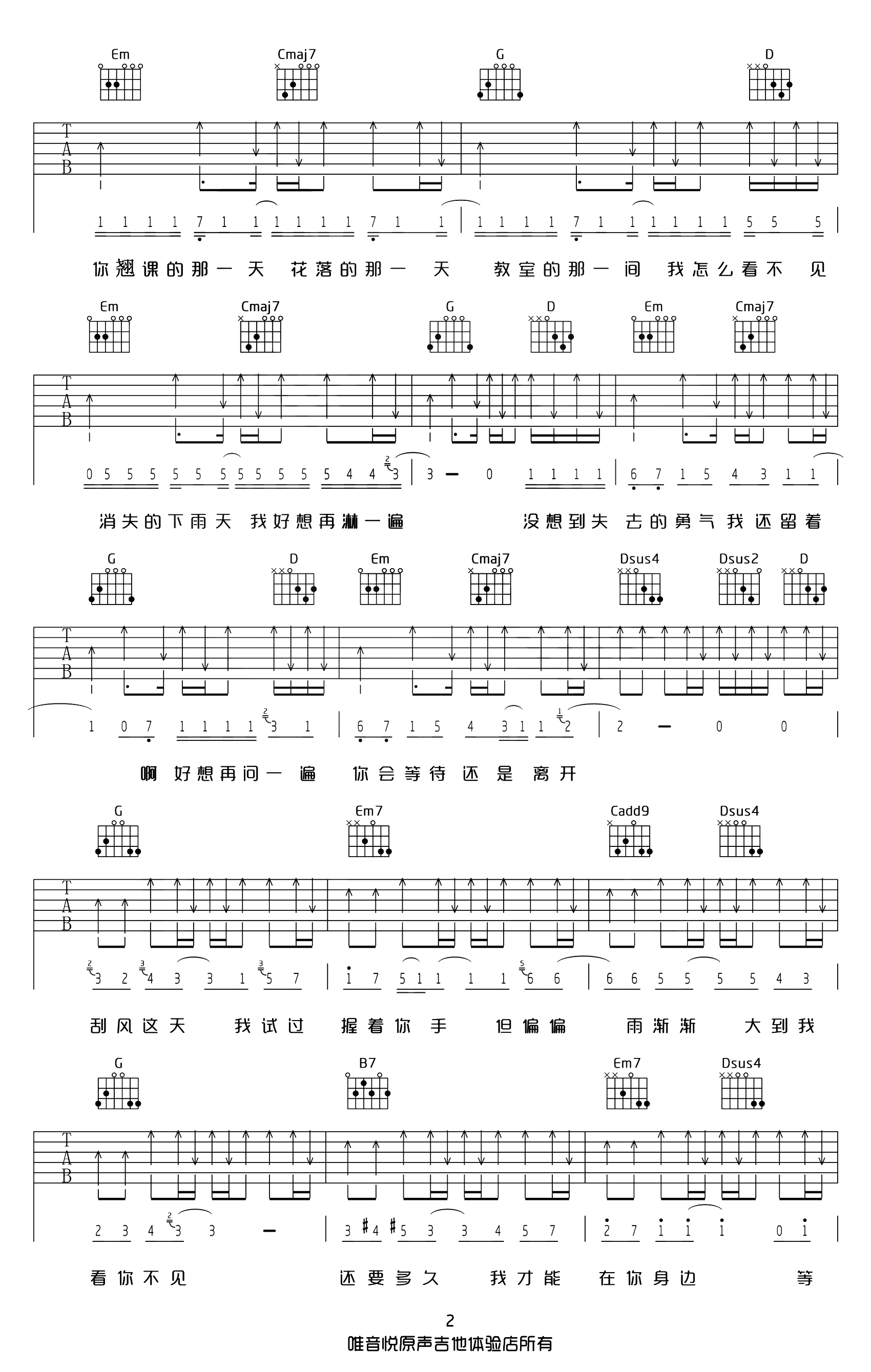 当前位置:琴谱网>吉他弹唱>晴天