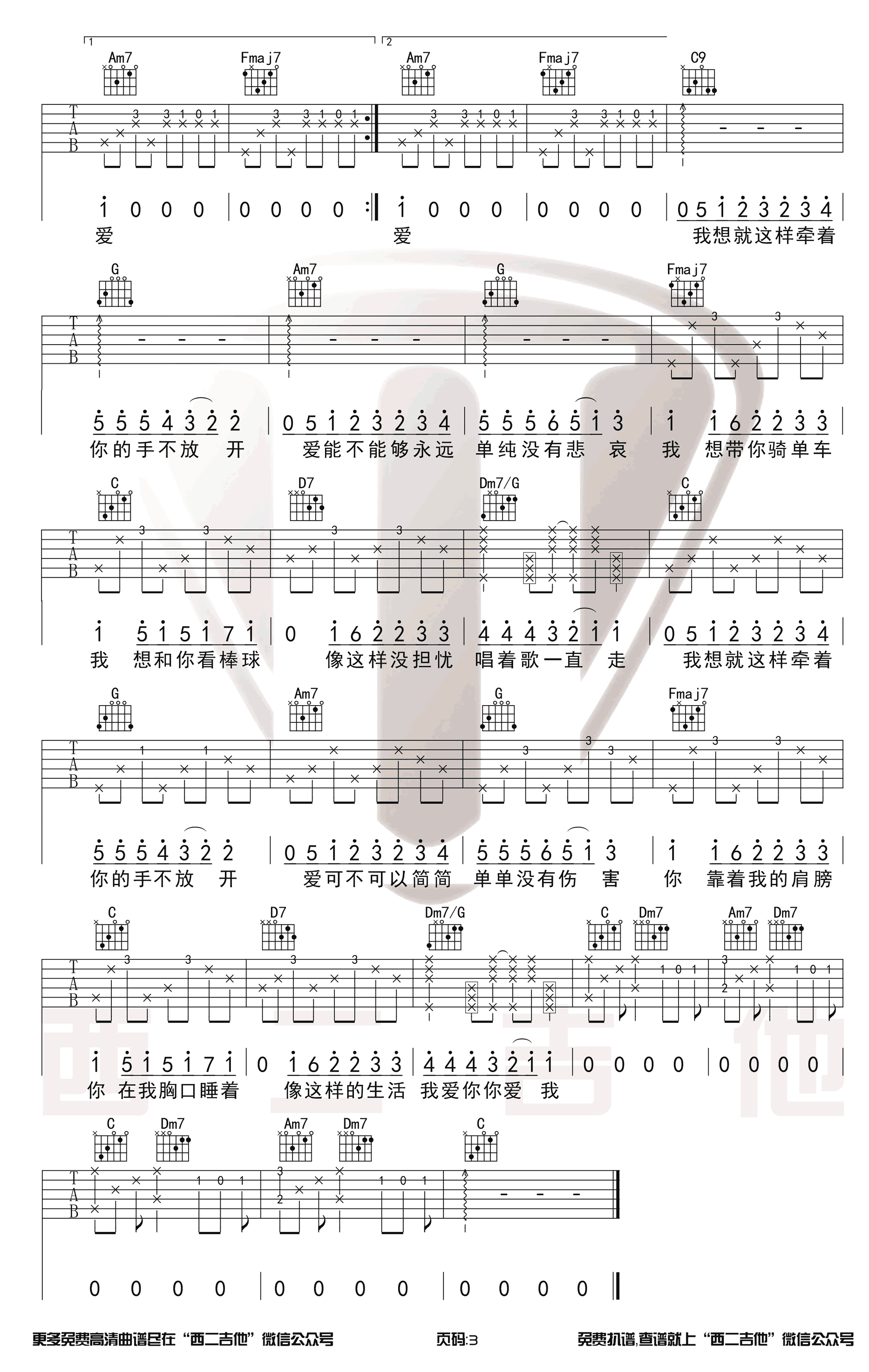 吉他弹唱C调来源:西二吉他111 浏览2024-01-22 23:27发布图谱共3页