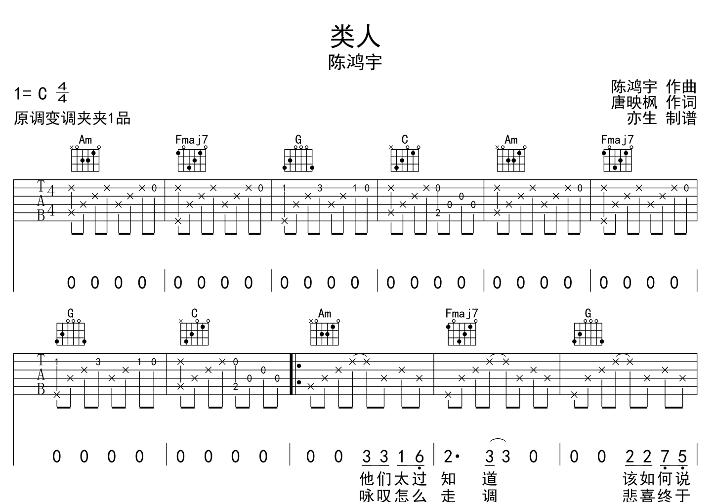 类人吉他谱 - 陈鸿宇 - C调吉他弹唱谱