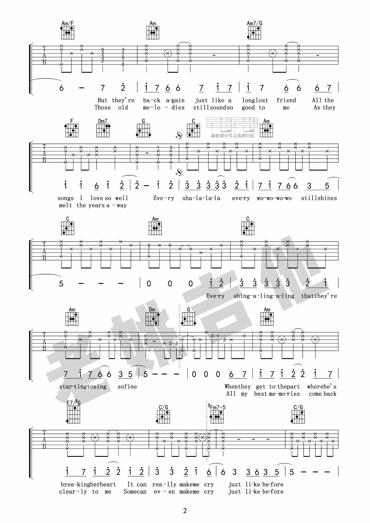 吉他弹唱C调来源:老姚吉他227 浏览2024-01-23 07:53发布图谱共3页