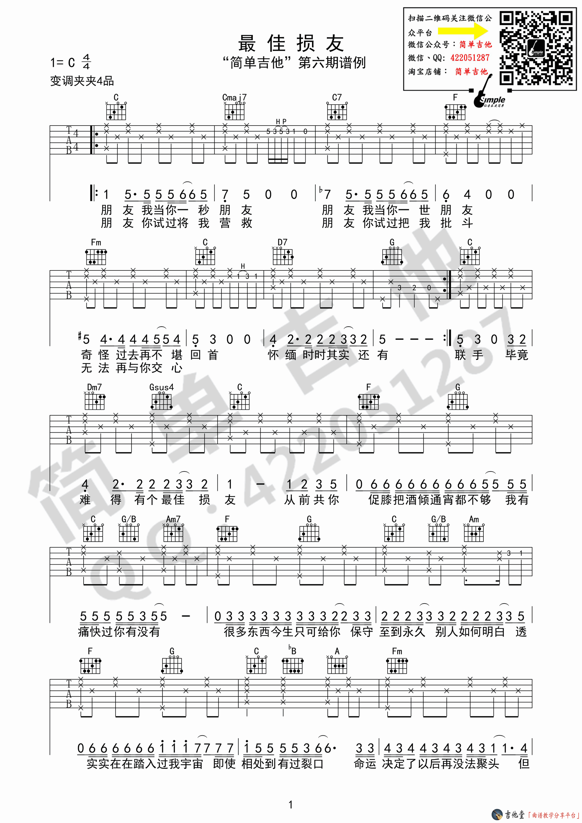当前位置:琴谱网>吉他弹唱>最佳损友