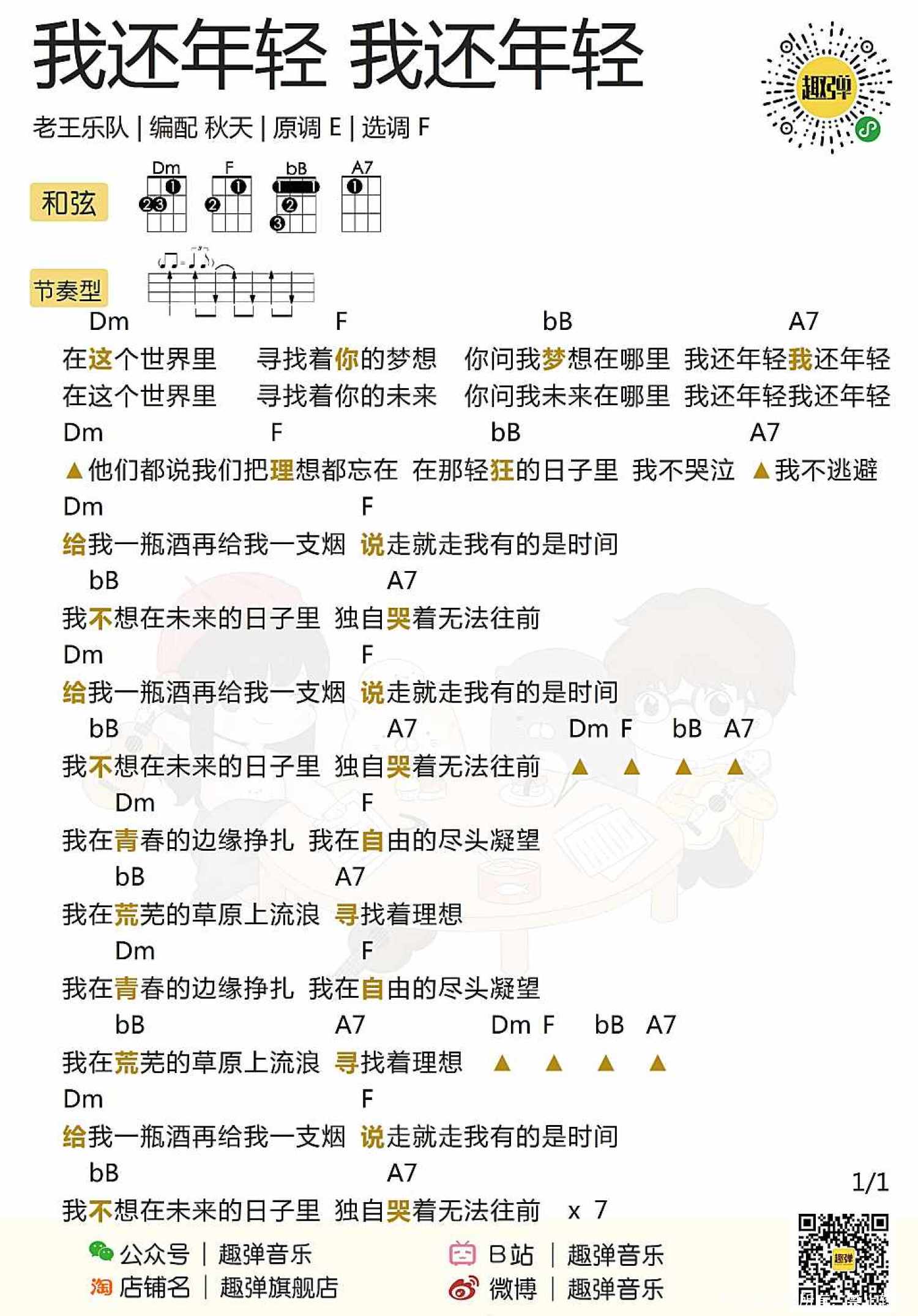 曲谱介绍: Aloha~今天跟大家分享的歌曲是来自 老王乐队的「我还年轻 我还年轻」 年轻就是资本!就能从头再来!