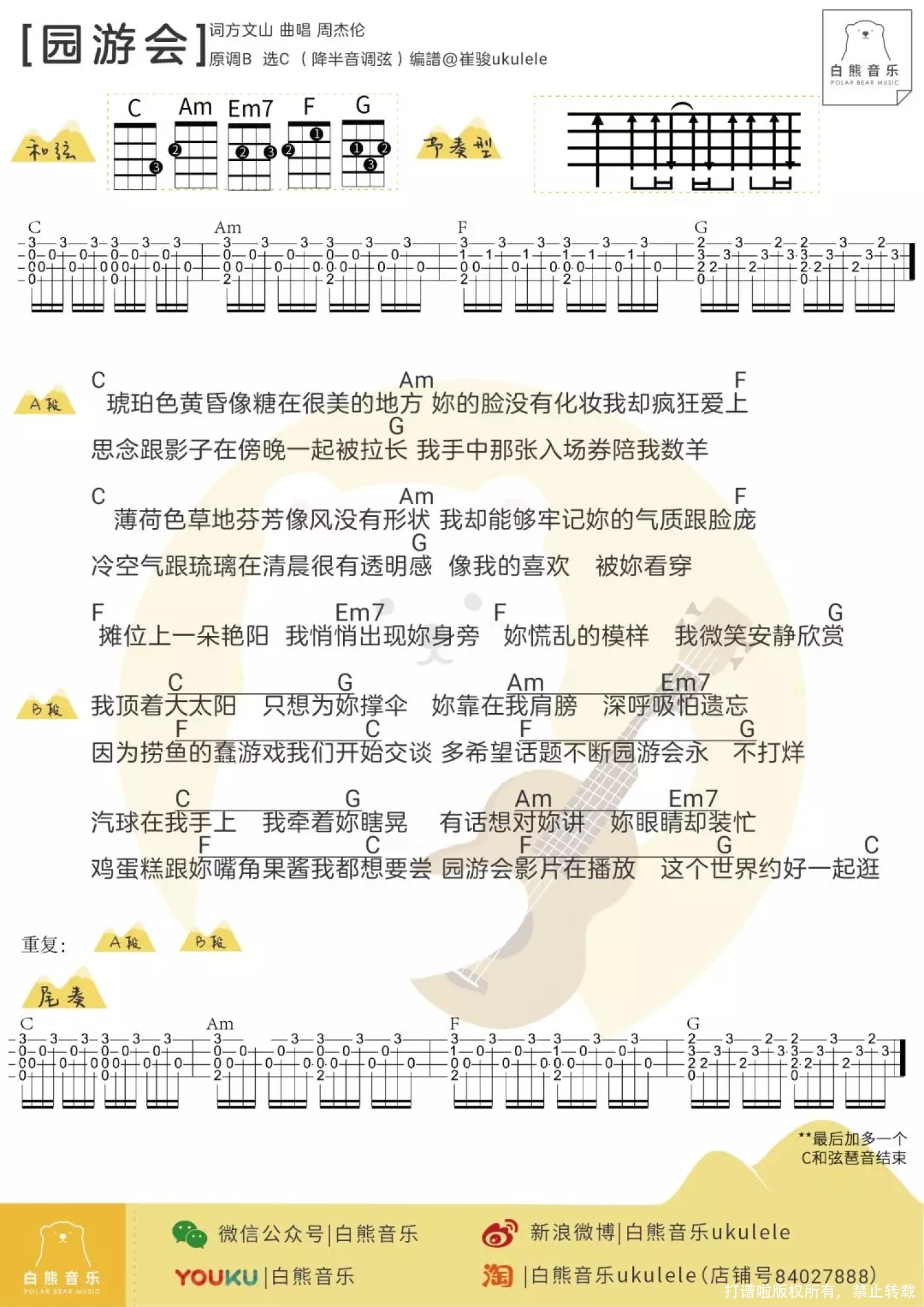 曲谱介绍:   Ukulele弹唱教学|@草帽呀   弹唱谱