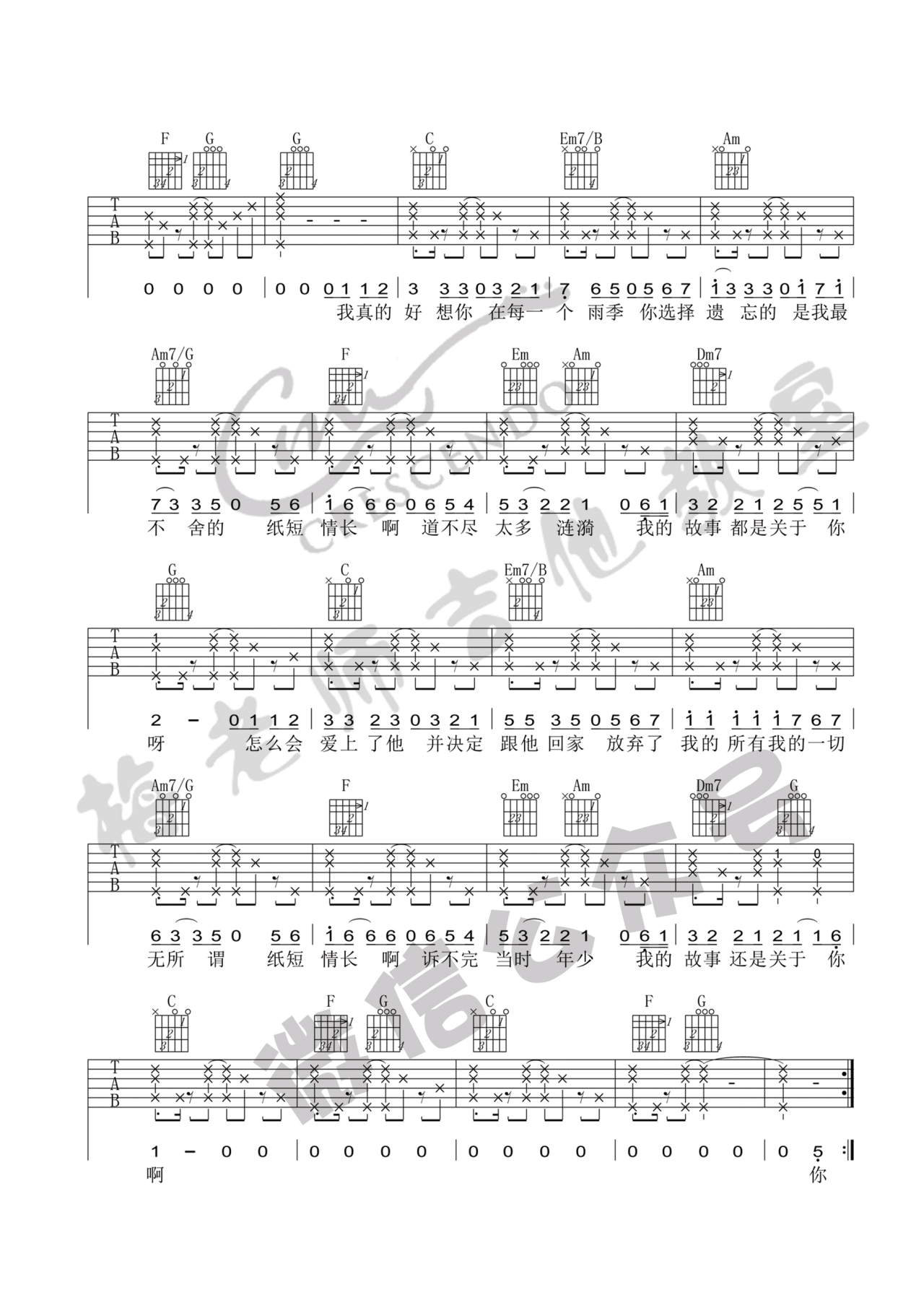 当前位置:琴谱网>吉他弹唱>纸短情长