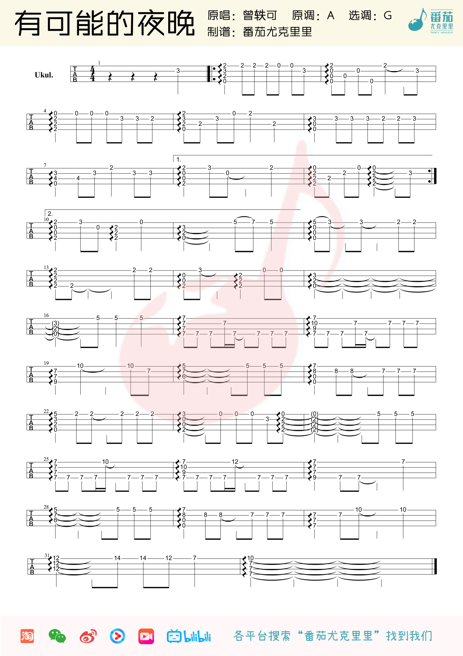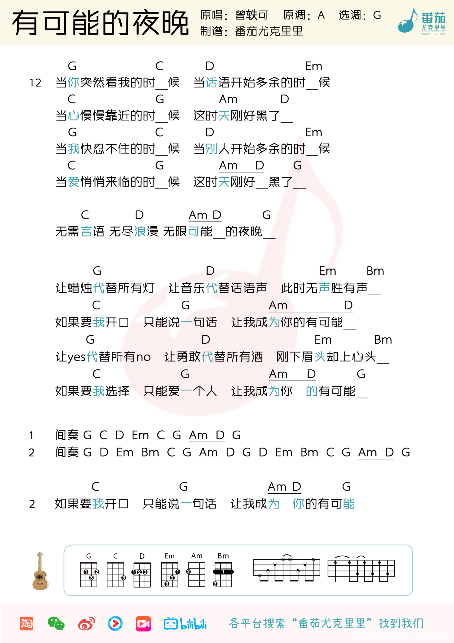 当前位置:琴谱网>尤克里里>有可能的夜晚