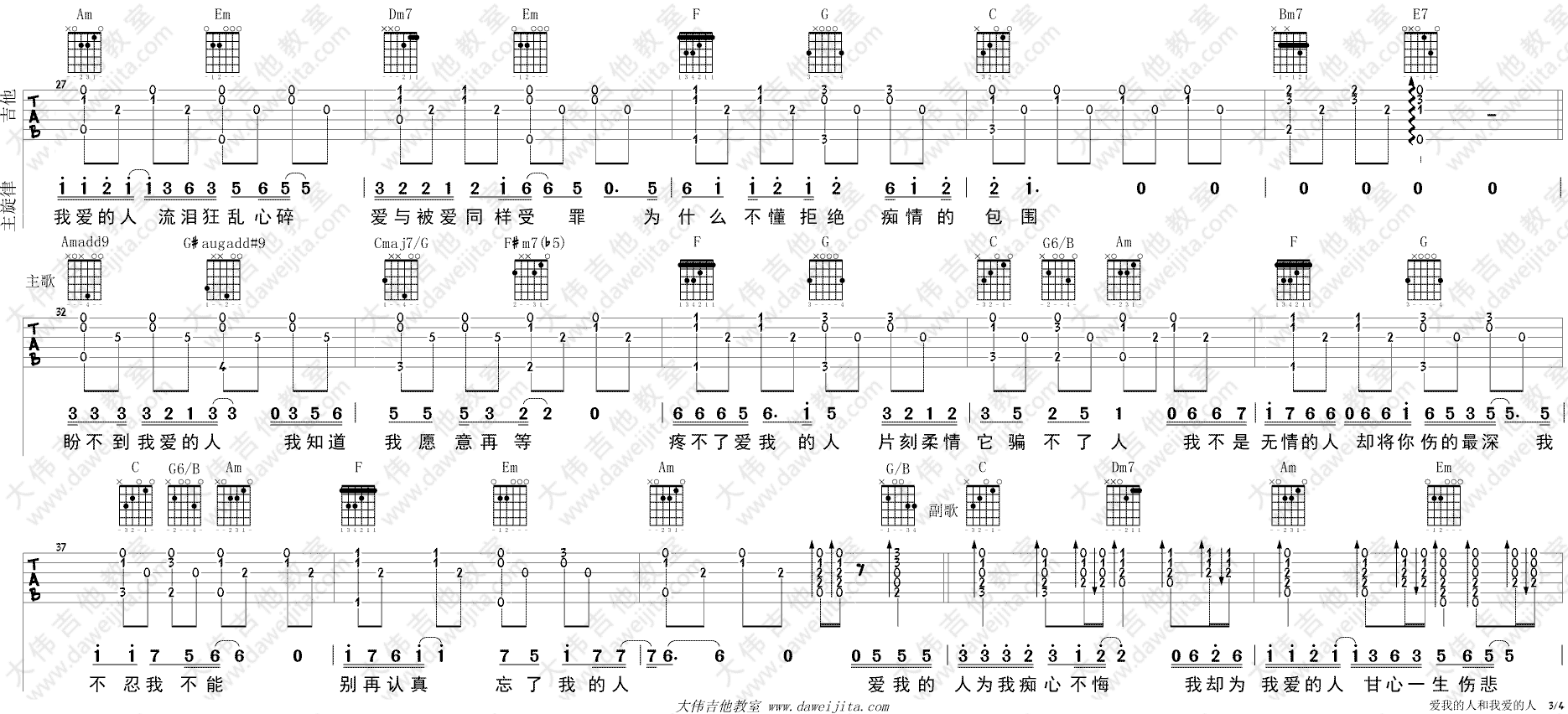 当前位置:琴谱网>吉他弹唱>爱我的人和我爱的人
