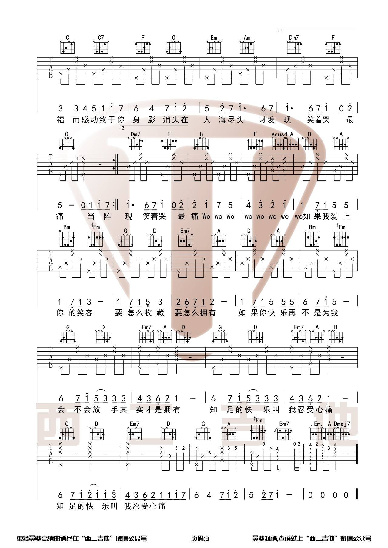 曲谱介绍: 附吉他教学《知足》吉他弹唱谱,采用C调指法编配原版,共有3张高清图谱。