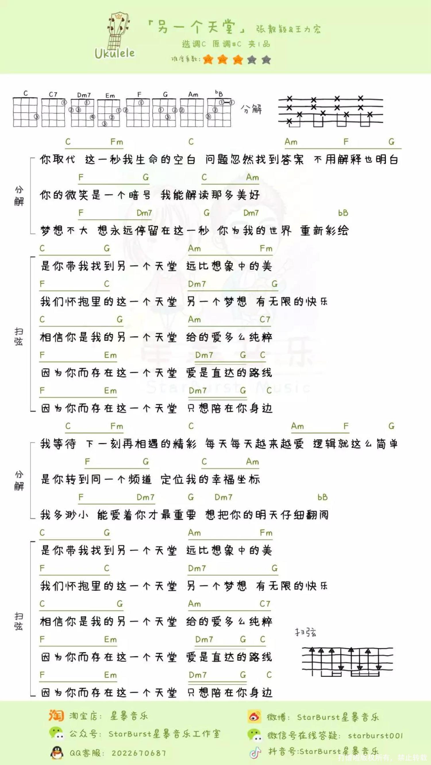 曲谱介绍:   女生尤克里里教学 男生吉他教学 尤克里里曲谱 吉他曲谱