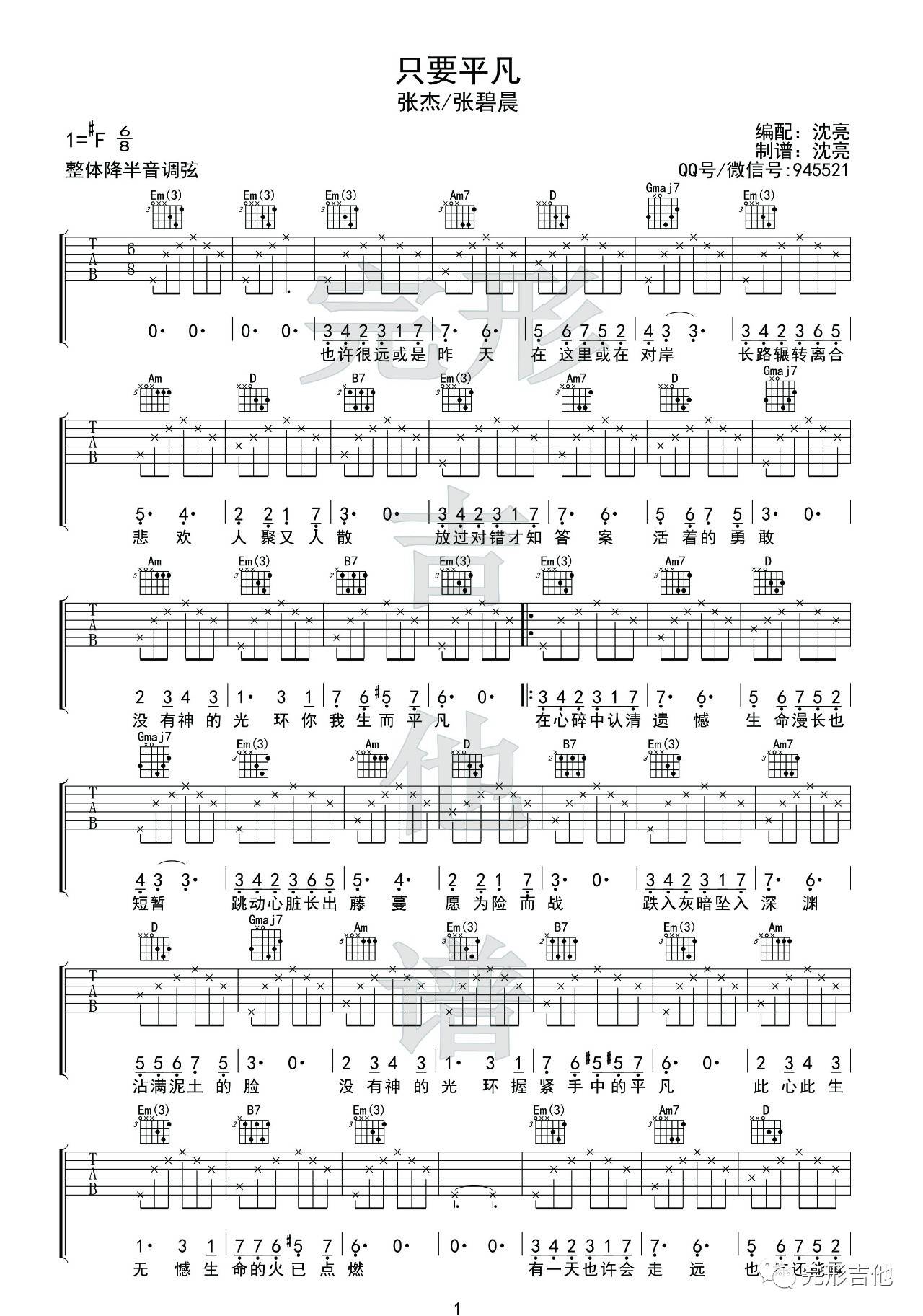 曲谱介绍: 张杰《只要平凡》吉他弹唱谱,采用F调指法编配,完形吉他编配出品,共有2张高清图谱,免翻页排版设计。