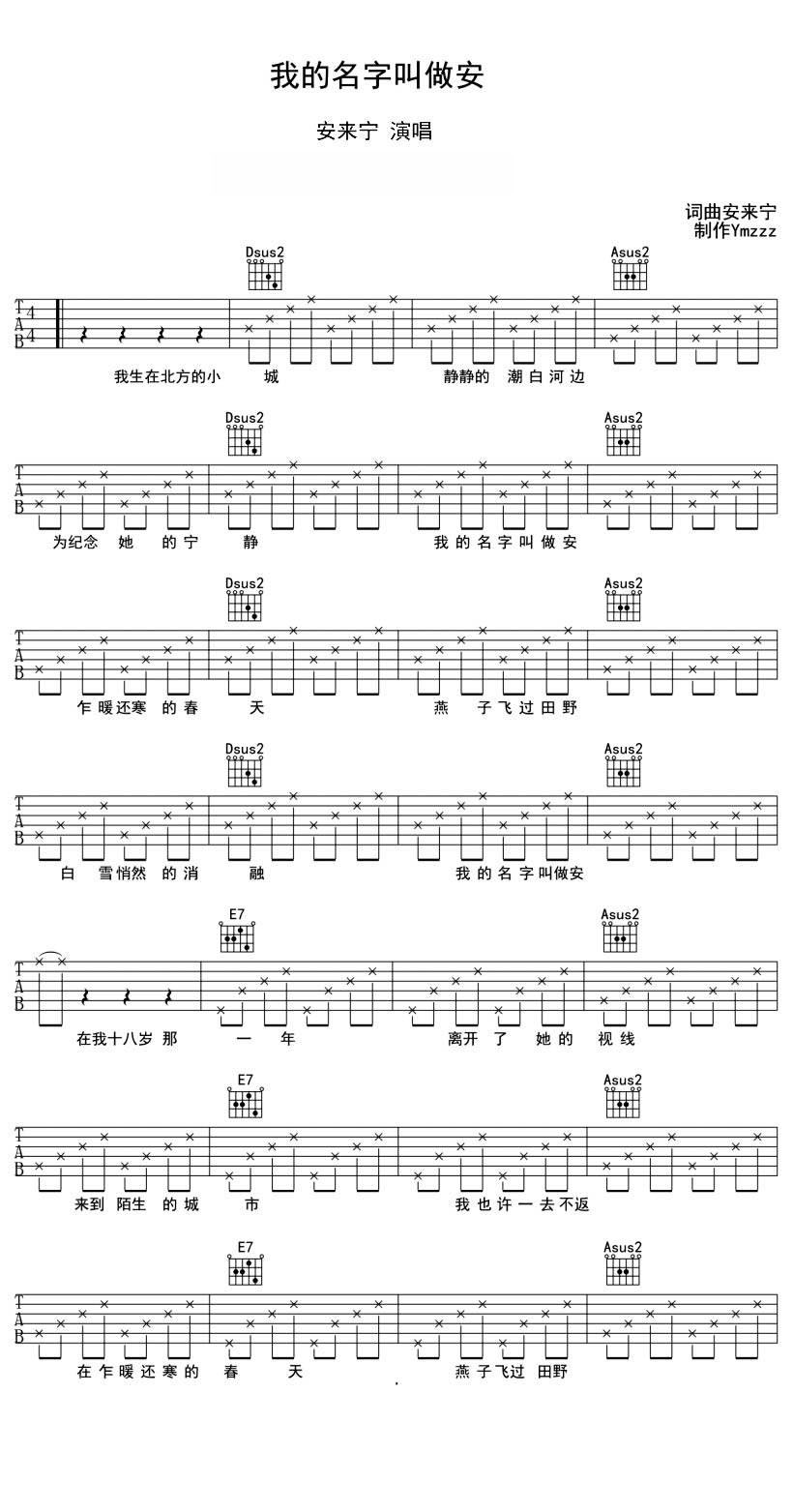 当前位置:琴谱网>吉他弹唱>我的名字叫做安