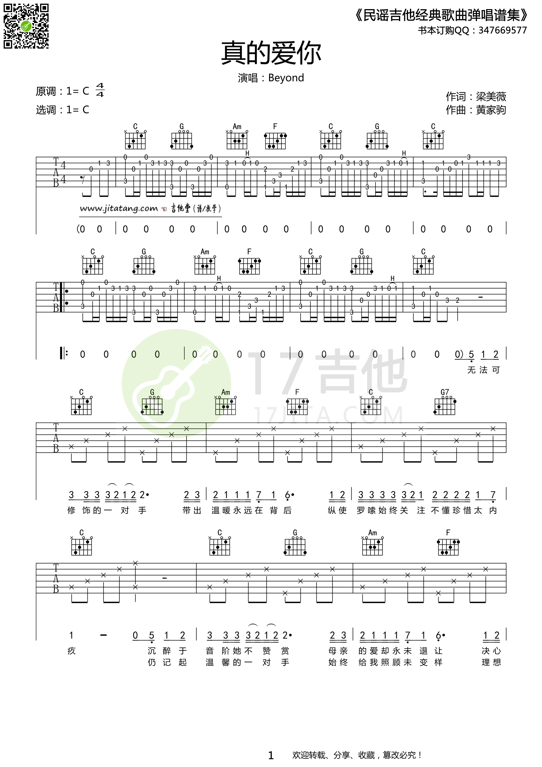 真的爱你吉他谱 - beyond - C调吉他弹唱谱