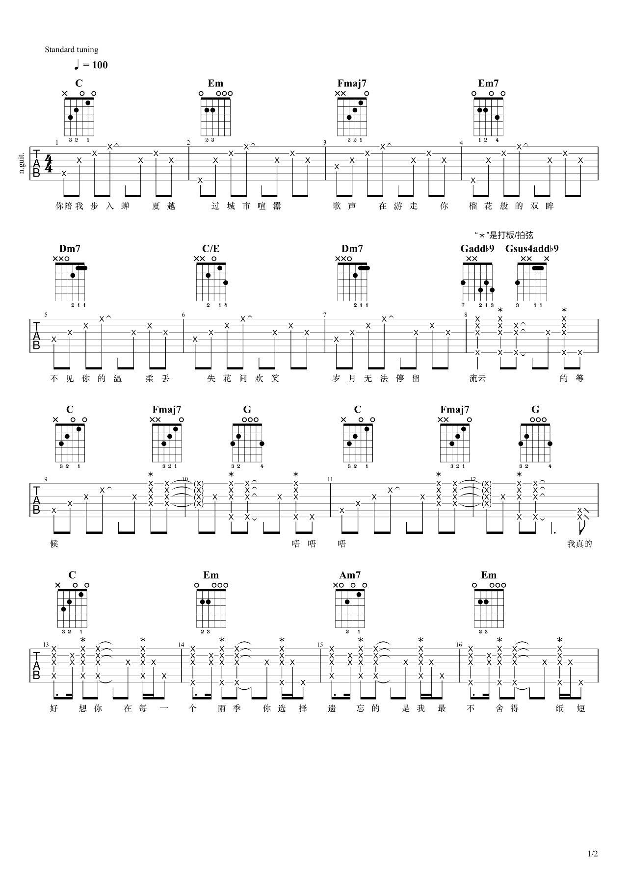 曲谱介绍: 烟把儿乐队《纸短情长》吉他弹唱谱,采用C调指法编配,7T吉他编配出品,共有2张高清图谱,免翻页排版设计。