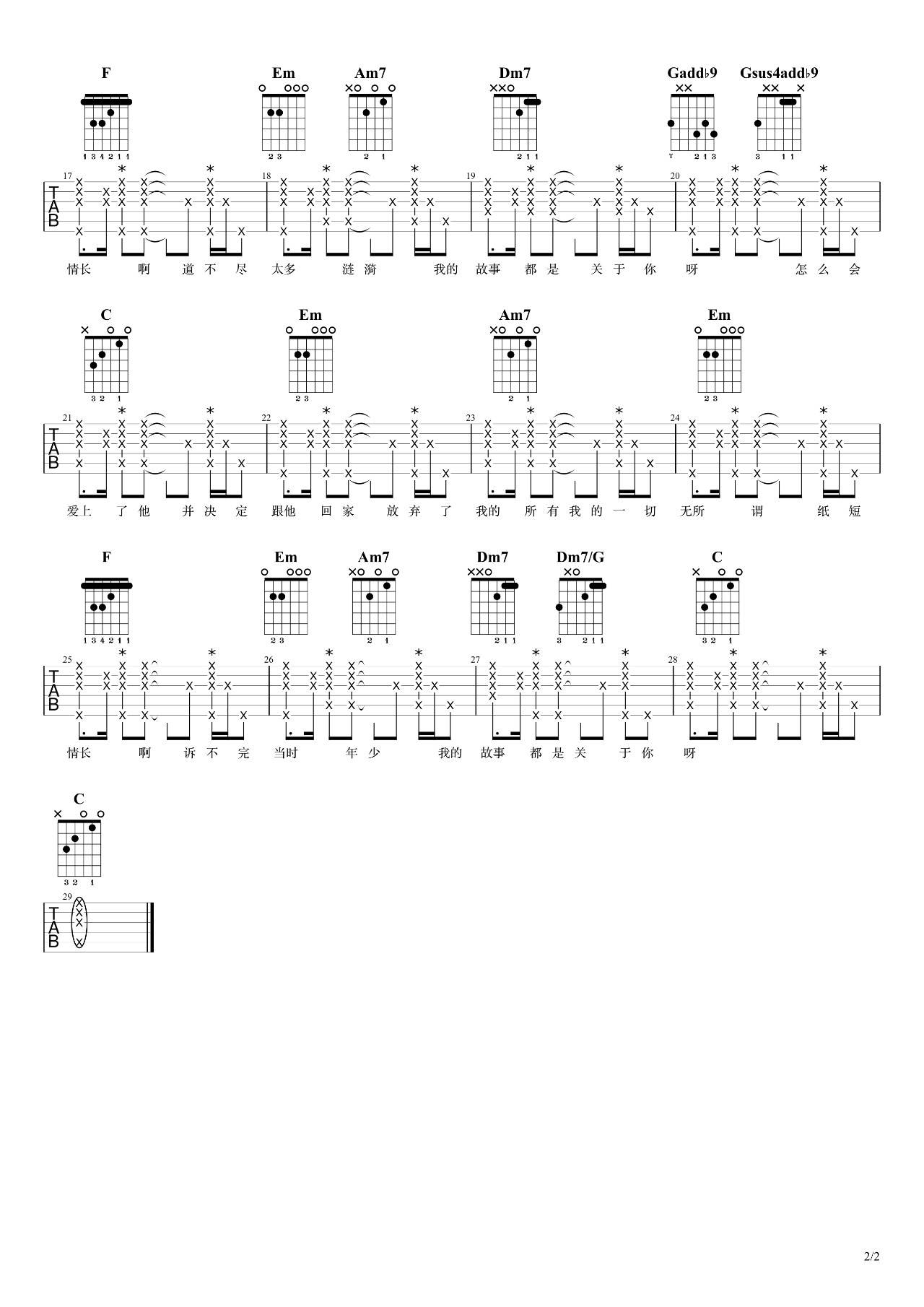 当前位置:琴谱网>吉他弹唱>纸短情长