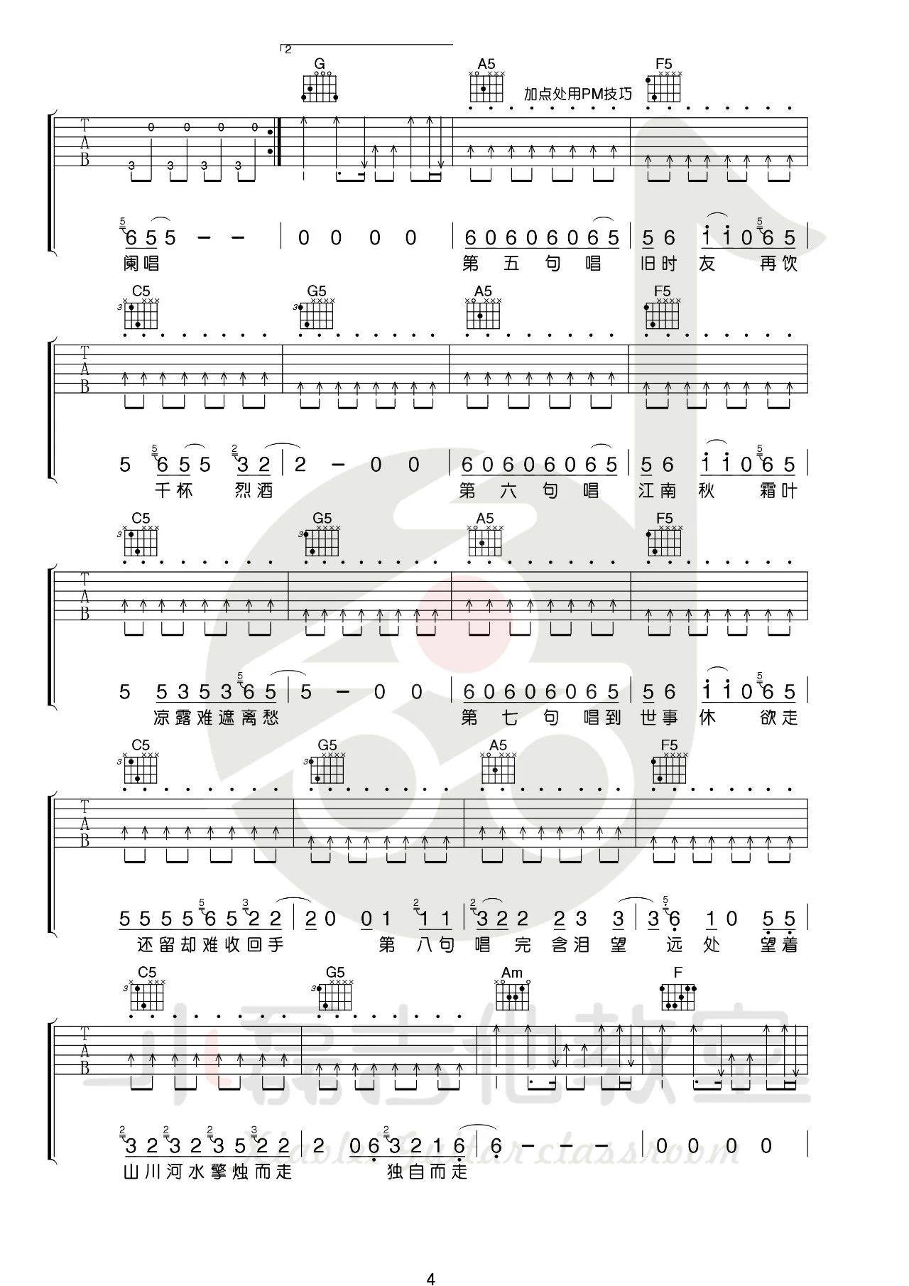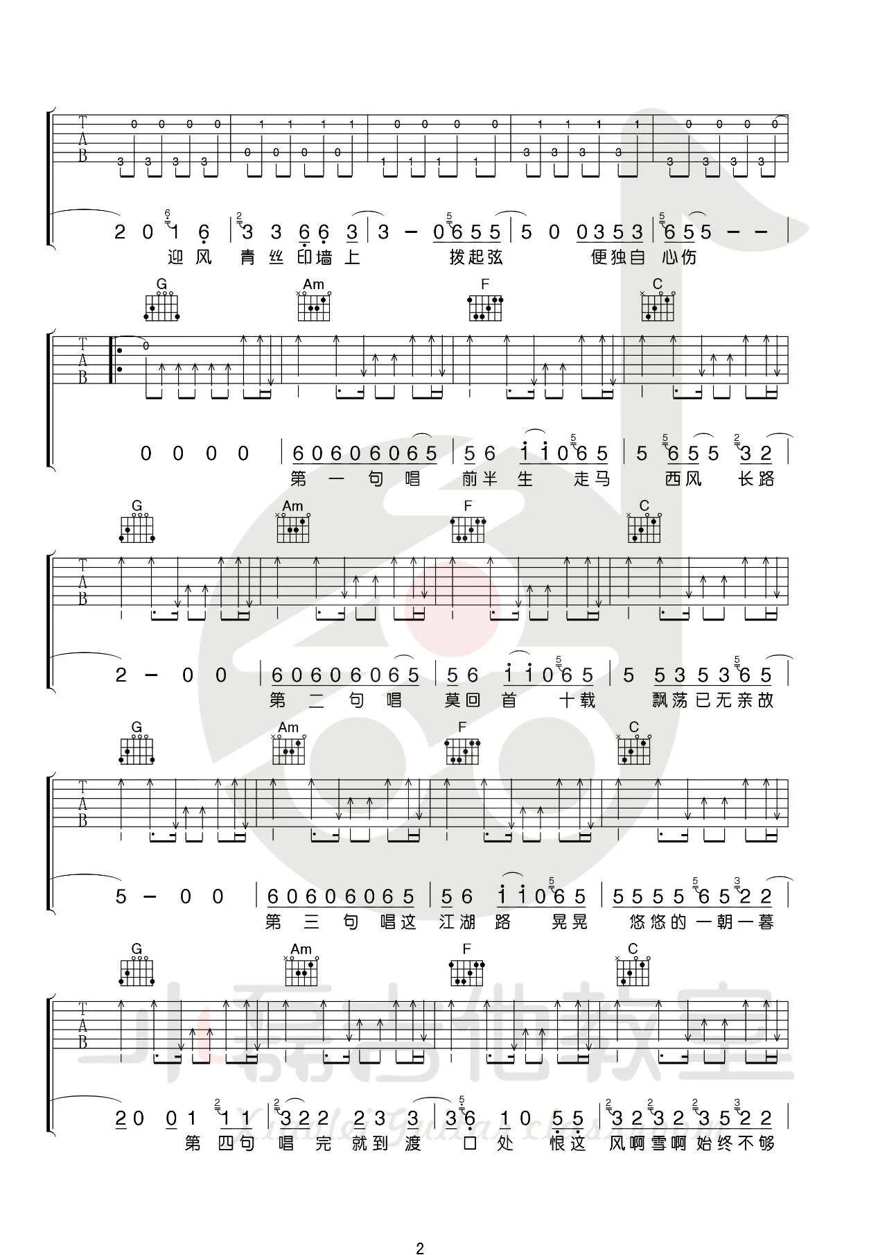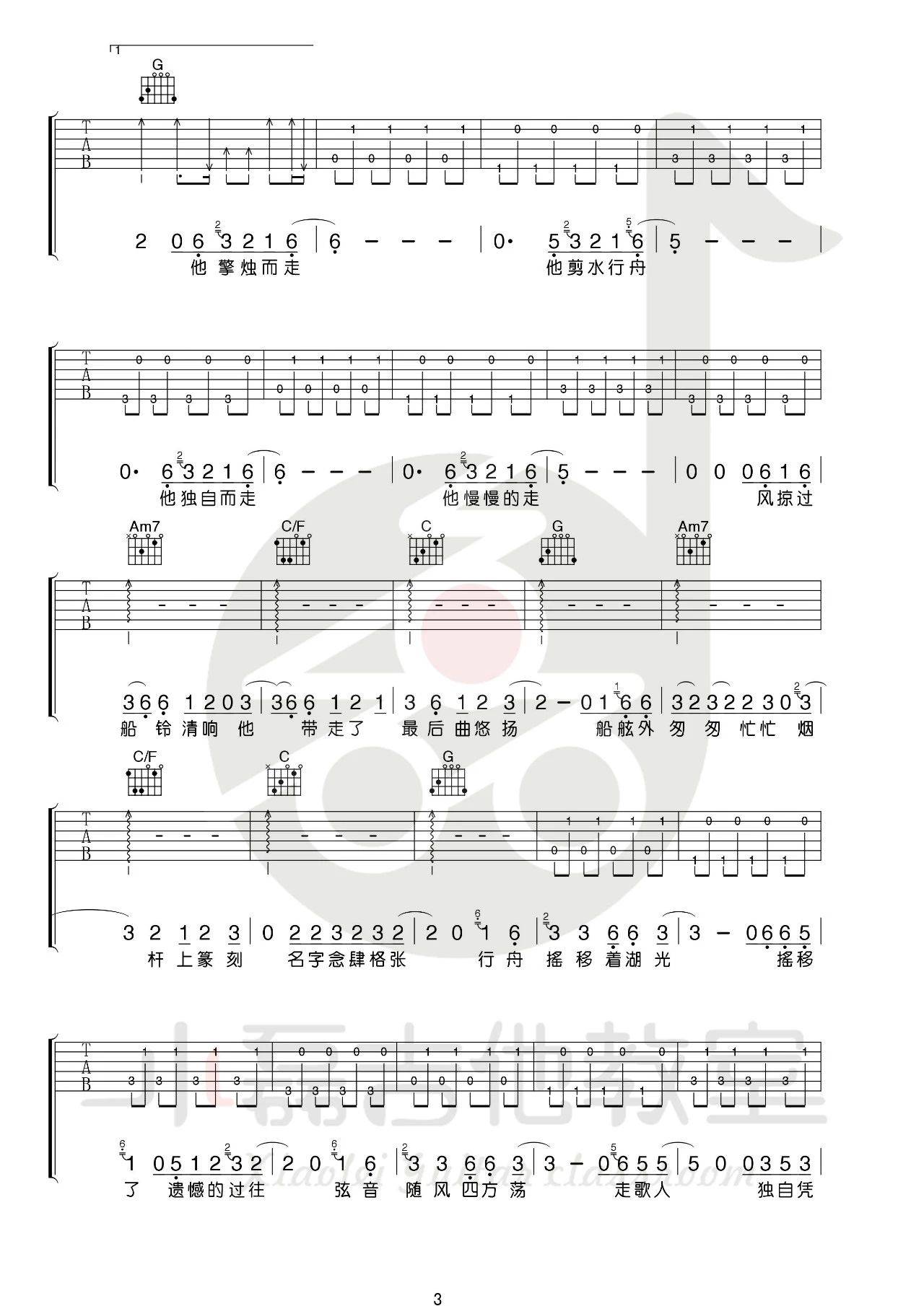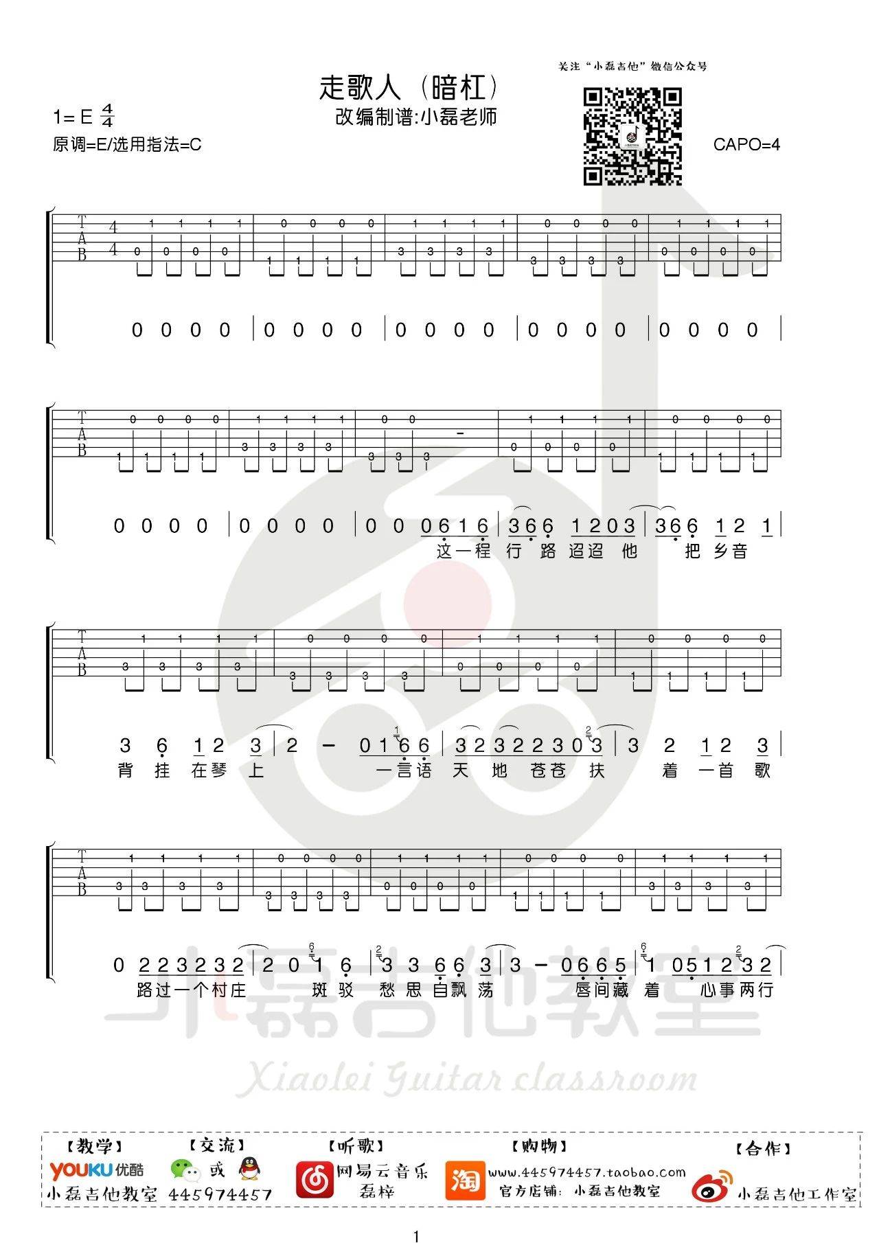 曲谱介绍: 暗杠《走歌人》吉他弹唱谱,采用C调指法编配,小磊吉他编配出品,共有5张高清图谱。