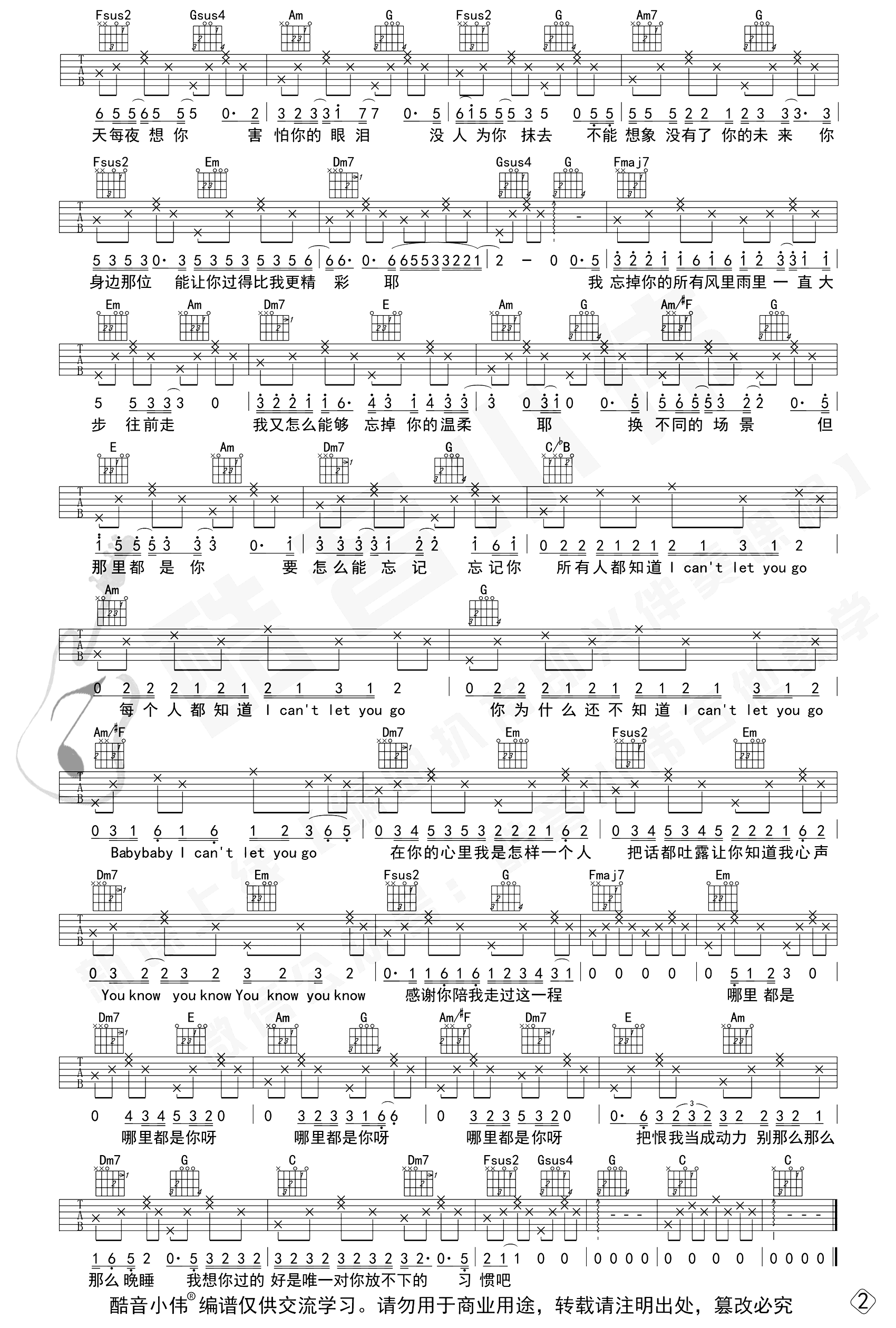 哪里都是你2.0吉他谱 - C调吉他弹唱谱