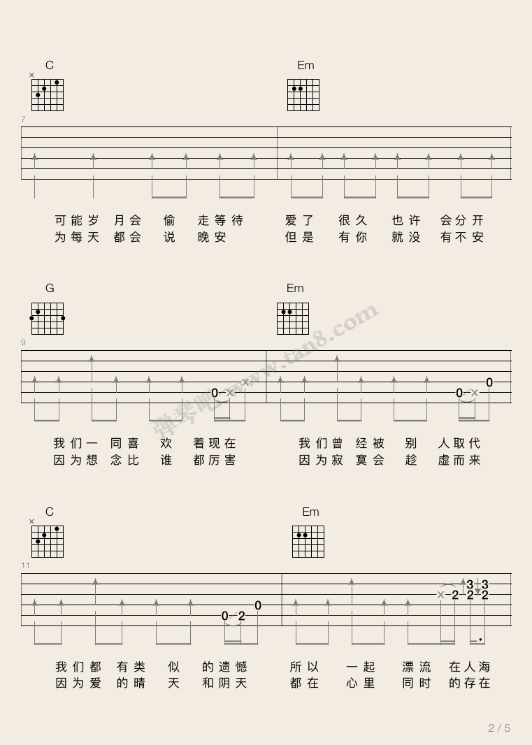 吉他弹唱C调来源:弹琴吧1965 浏览2024-01-23 09:32发布图谱共5页