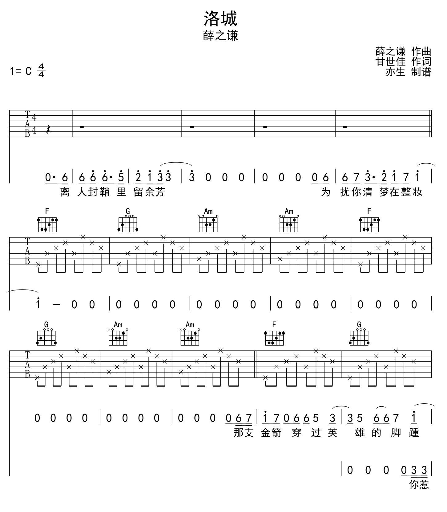 《洛城,_C调吉他谱 - 《洛城, - C调吉他弹唱谱