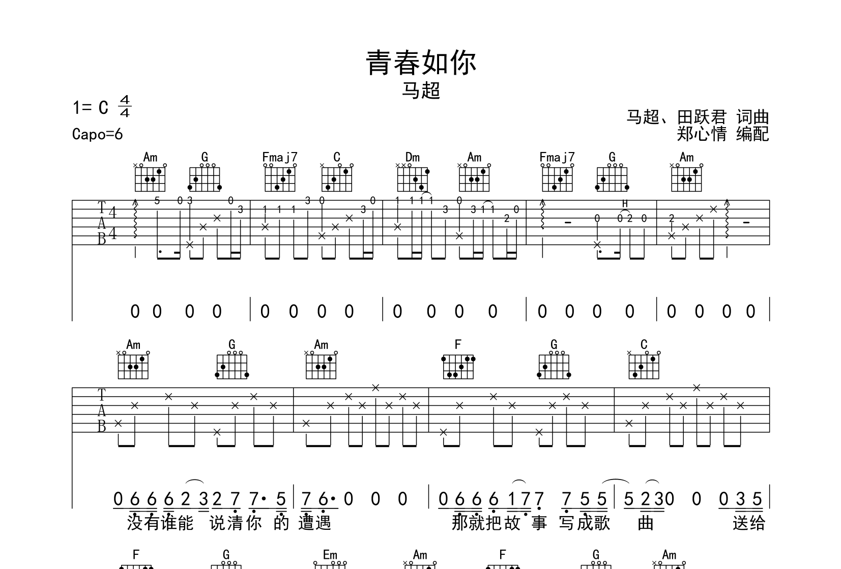 青春如你吉他谱 - 马超 - C调吉他弹唱谱