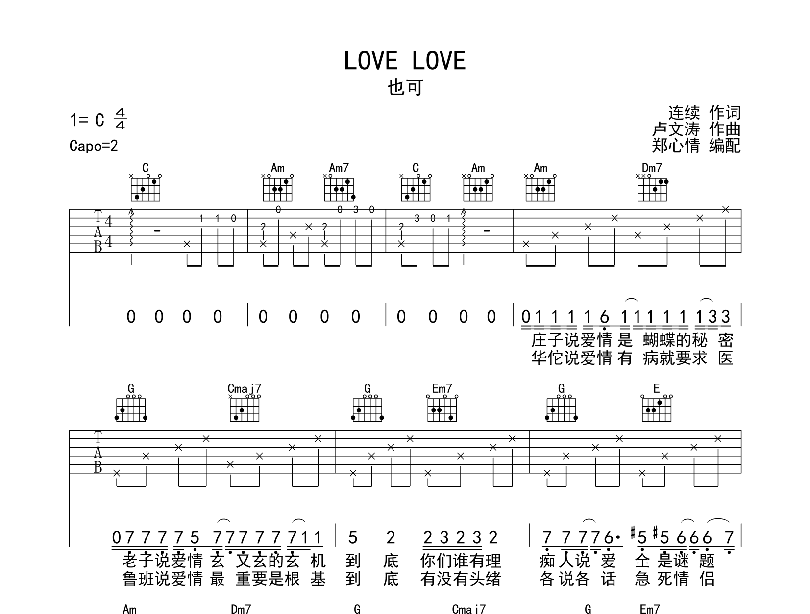LOVELOVE吉他谱 - 也可 - C调吉他弹唱谱