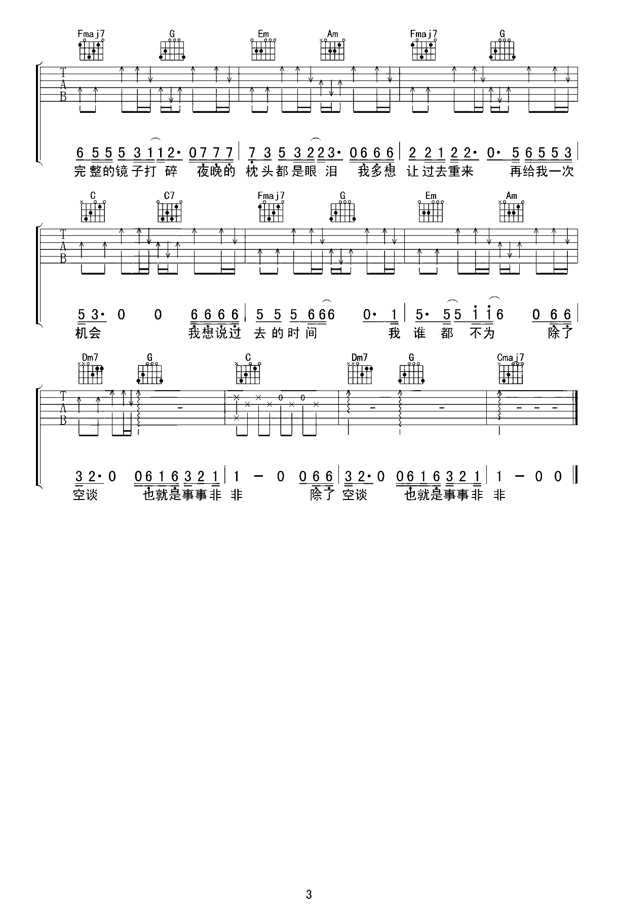 曲谱介绍: 隔壁老樊《我曾》吉他谱,共有3张高清图片谱例,本谱为C调吉他弹唱谱,变调夹可夹5品弹唱原调F,节奏4/4拍,难度较简单。