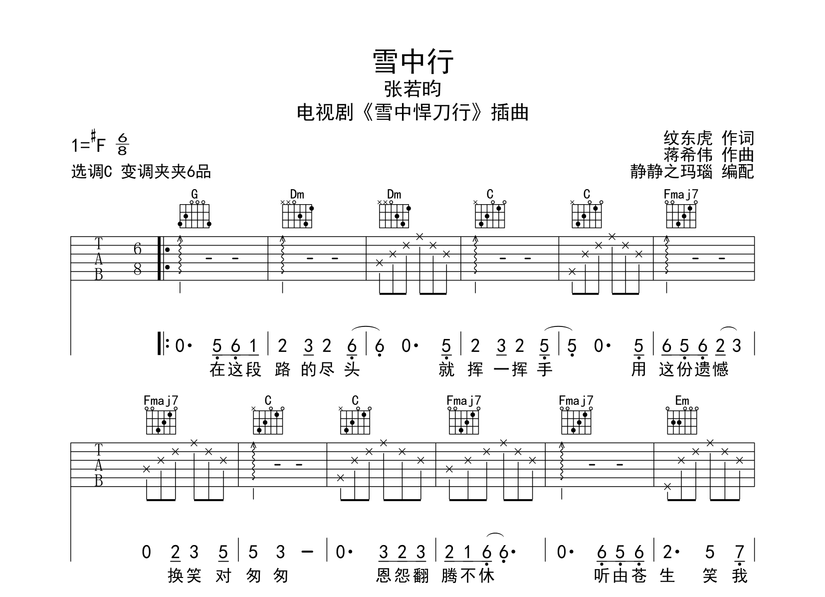 当前位置:琴谱网>吉他弹唱>雪中行