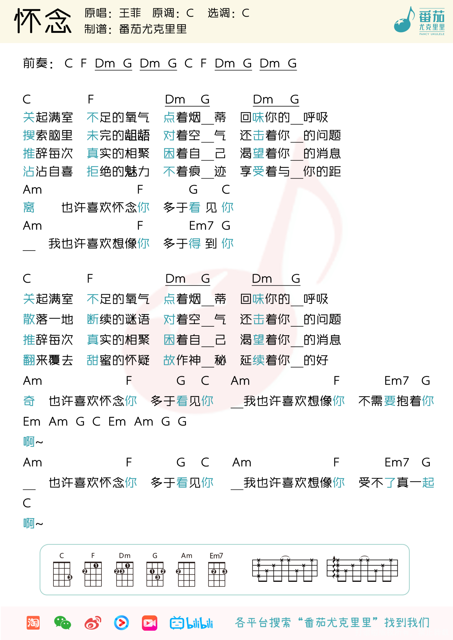 怀念尤克里里谱 - 王菲