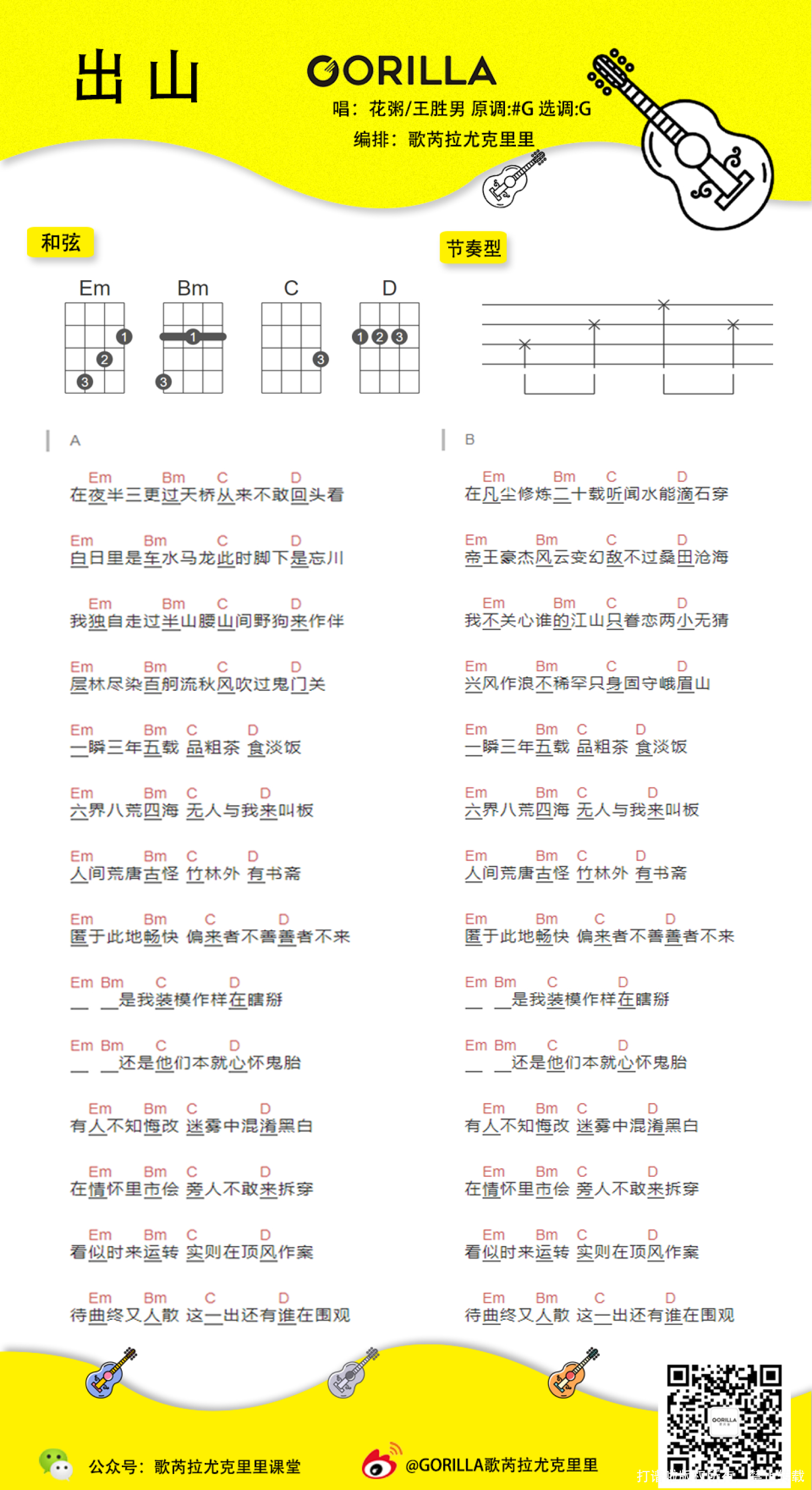 曲谱介绍: 花粥/王胜男《出山》尤克里里谱,共有1张高清图谱,免翻页排版设计。