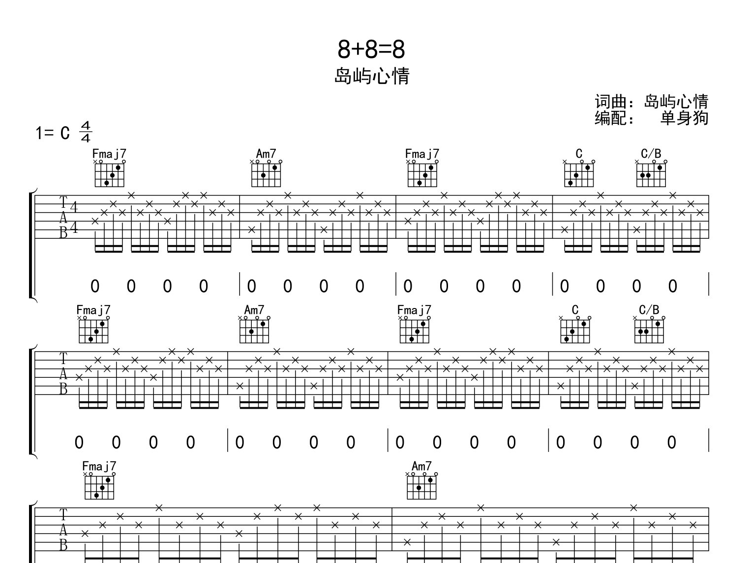 8+8=8吉他谱 - 岛屿心情 - C调吉他弹唱谱