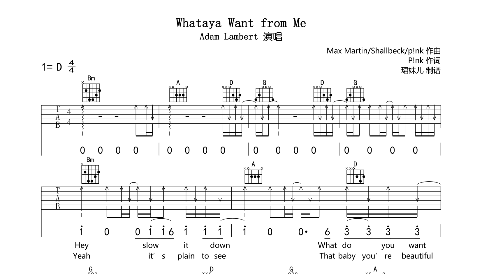 Whataya Want from Me吉他谱 - Adam - D调吉他弹唱谱 - 原版