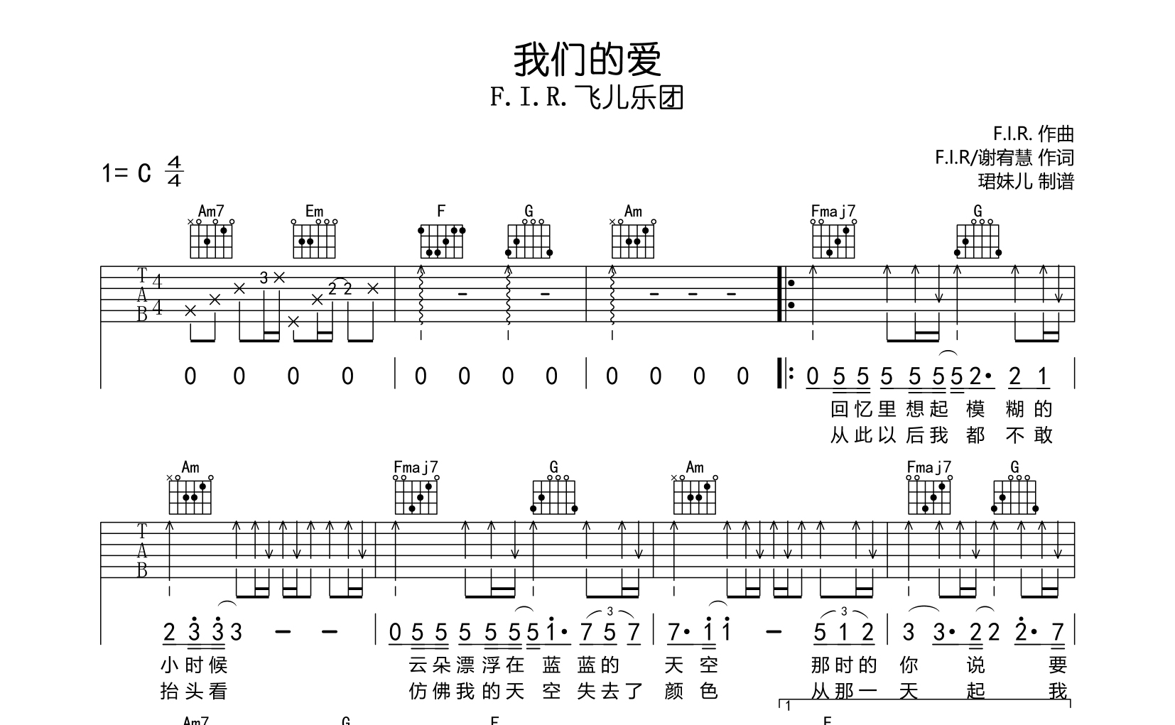 我们的爱吉他谱 - 飞儿乐团 - C调吉他弹唱谱
